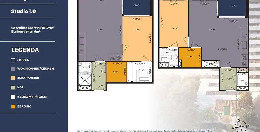 1 kamers appartement van 57 m2