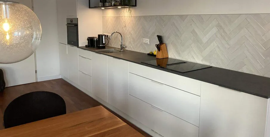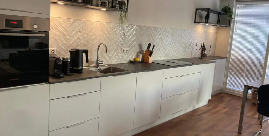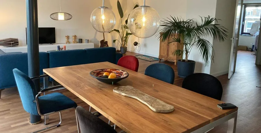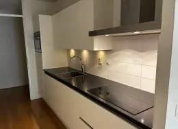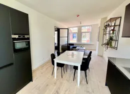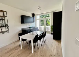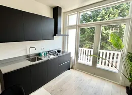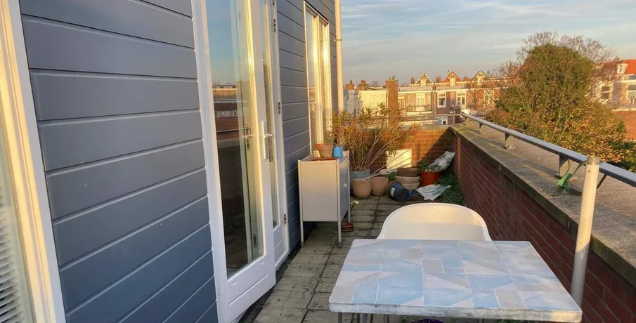 . Description. Turn-key and fully furnished apartment with 2 bedrooms and a nice terrace at . This apartment is approx. 90m2 and situated on the 3rd floor of a modern apartment building with elevator access and a separate storage in the basement. The building was built in the year 2000 and the apartment has an A-label energy rating. Excellent option for a working couple in The Hague that wishes to live close to the cozy Weimarstraat shopping street and near to public transport connections to the city centre and central station.. Layout. Shared entrance from the street with video bell-system and door to the stairs and elevator. On the 3rd floor the entrance to the apartment to hallway with doors to all the rooms. The living room is spacious and bright with a brand new and modern kitchen and stylish furniture, doors to the balcony which is as long as the apartment itself. 2 spacious bedrooms, one bedroom could be used as a home office. Bathroom with shower cabin, toilet, sink, towel radiator. Laminate flooring, centrally heated and double glazed. Storage room available in the basement.. Location. Within walking distance you will not only find nice shops in Weimarstraat, but also the nice neighborhood/play park De Verademing and the charming Emma's Hof. If you take your bike you can be on the beach or in the forest within 10 minutes.. Eating options can also be found in these streets, but also within walking distance, including around Regentesseplein, Koningsplein and also in the Zeeheldenkwartier. Public transport to the beach, the city or the train stations stops around the corner with Randstadrail line 3 and tram line 11. Main roads can also be reached within minutes. In the middle of the city, a wonderful living environment with everything nearby. All this contributes to the pleasant living environment that appeals to many people in the neighborhood.. Features. - A-label. - Turn-key and furnished. - Modern building. - Elevator access. - Large balcony. - Storage room. - 2 bedrooms. Rental price: €2295,- excluding utilities - Furnished.