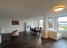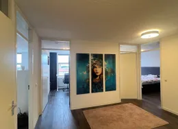 . Beschrijving. TE HUUR!! Ruim, sfeervol gestoffeerd en gemeubileerd 3 kamer apartement gelegen op een unieke locatie nabij het centrum. Het appartement is voorzien van 2 ruime slaapkamers, 3 balkons, luxe keuken en badkamer, berging en garagebox. Het appartement ligt op loopafstand van het Centrum, diverse winkels, het Stadswandelpark en theater.Begane grond:Gezamenlijke entree met brievenbussen, lift, trapop....