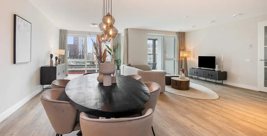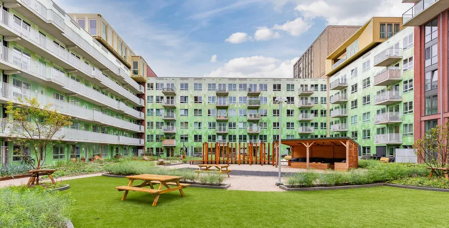 . De Ananas in Leiden - modern en comfortabel wonen. De Ananas in Leiden biedt eigentijds en comfortabel wonen. Bewoners wonen zeer centraal en genieten van diverse gemakken, zoals de mogelijkheid tot overdekt parkeren en de ruime, groene binnentuin. Het gebouw is bovendien duurzaam en voorzien van comfortabele vloerverwarming en -koeling in alle appartementen. Op fietsafstand vind je onder andere de historische binnenstad van Leiden, winkelcentra en parken.. Indeling. Het appartement aan 331 is een 3-kamerwoning met een woonoppervlakte van circa 113 m² en beschikt over een ruime loggia. Het appartement bevindt zich op de tweede verdieping van het complex, direct grenzend aan de binnentuin.. De woning is uitgevoerd met een luxe keuken met ingebouwde apparatuur, inclusief keukengerei, Nespresso-koffiemachine en waterkoker. De badkamer is compleet met wastafel en douchehoek met thermostaatkraan.. De woonkamer is volledig ingericht met een ruime zithoek en grote eettafel met zes stoelen. De master bedroom heeft een boxspringbed (180 x 200) en een ruime garderobekast. De tweede slaapkamer beschikt over een stapelbed, garderobekast en klein bureau.. Bijzonderheden. De Ananas bevindt zich aan de zuidoostrand van Leiden. Het historische centrum is binnen vijf minuten fietsen bereikbaar. Op slechts één minuut lopen vind je zowel bus- als treinstation. Voor de dagelijkse boodschappen hoef je niet ver; een supermarkt ligt aan de overkant. Voor recreatie ligt het strand van Katwijk of Noordwijk binnen handbereik, evenals het Groene Hart voor fietstochten. Polderpark Cronesteyn ligt op een paar minuten lopen, ideaal om te wandelen, joggen of ontspannen.. - Volledig gemeubileerde woning;. - Luxe badkamer met dubbele wastafel en douche;. - Aparte toiletruimte;. - Luxe keuken en voorzien van inbouwapparatuur;. - 2 slaapkamers;. - Gasloos met vloerverwarming en -koeling;. - Eigen berging en twee fietsplekken in gemeenschappelijke fietsenberging;. - (Gezamenlijk) Bruto jaarinkomen dient min. €98.100,- te bedragen;. - De woning is niet geschikt voor woningdelers en garantstellers;. - Per direct beschikbaar;. - Begroting servicekosten ca. € 38,- p/m;. - Parkeerplaats (optioneel) € 95,- p/m.. Interesse?. Neem contact op met ons kantoor voor meer informatie of het plannen van een bezichtiging..