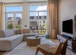 . Rotterdam. Terraced house. 3 bedrooms. Welcome to a stunning and recently built family residence located in a green and peaceful part of Rotterdam. Completed in 2024, this modern home combines space, comfort, and premium finishes, offering approximately 174 m² of living space spread across three levels. With its high-quality Siemens built-in appliances, multiple outdoor spaces, and a generous garden, this property is the perfect balance between luxury and homely warmth.. Upon entering, you are welcomed by a bright and spacious hallway that leads into the expansive living room. Large windows flood the space with natural light, creating a warm and inviting atmosphere. The open-plan layout seamlessly connects the living and dining areas with the stylish kitchen, making it an ideal setting for both daily living and entertaining.. The kitchen is fully equipped with state-of-the-art Siemens appliances, including an IQ700 oven, microwave, dishwasher, refrigerator, freezer, induction cooktop, and an advanced Bespoke AI Samsung washing machine and dryer set. A sleek design combined with high-quality finishes ensures both functionality and elegance.. The property features six rooms in total, including three spacious bedrooms and two modern bathrooms. The master suite is designed with comfort in mind, while the additional bedrooms are perfect for family, guests, or use as a home office. Each bathroom is equipped with luxury fixtures, including a bathtub, separate walk-in shower, double sinks, and high-end finishes.. A true highlight of this residence is the abundance of outdoor space. The home offers a generous garden of approximately 136 m², a 50 m² terrace, and additional balconies, making it easy to enjoy outdoor living throughout the seasons. With an overall plot size of 556 m², this property provides both privacy and freedom.. Practicality has also been carefully considered: the home includes ample storage space, a private crawl space, and is finished with modern insulation and HR++ glass for optimal energy efficiency. With its excellent energy label and solar panels, this residence is ready for the future.. Located in a tranquil neighborhood while still being close to Rotterdam’s vibrant city life, the property offers easy access to shops, schools, and public transport. Ample public parking is available in the area.. For tenants seeking a short stay arrangement, the property is also available at €4,750 per month including utilities.. Details:. • Furnished. • 174 m² living space. • Plot: 556 m². • Garden: 136 m². • Terrace: 50 m². • 6 rooms. • 3 bedrooms. • 2 bathrooms. • Year of construction: 2024. • Energy-efficient (HR++ glazing, solar panels). • Storage included. Rental conditions:. • Available: 22 September 2025. • Lease agreement: short stay / diplomstic clause. • Rental price: €3,750 excl. utilities (G/W/E/Internet/TV). • Income requirement (gross): at • least 3x the rent. • Deposit: 2 months rent. • Pets in consultation. • No students. • Maximum 2 house sharing. No rights can be derived from the content of this text.. Photos & Videos. Show in grid. Show in slider.