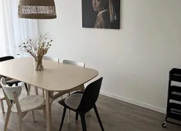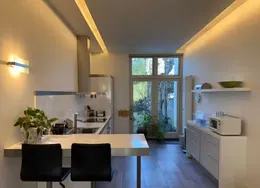 . Beschrijving. TE HUUR: Tussenwoning in zeer gewilde woonwijk Breda. Deze tussenwoning zal voor bepaalde tijd te huur zijn in de vorm van een diplomatenclause.. Gemeubileerde tussenwoning met eigen tuin in de buurt Belcrum. Belcrum grenst aan het centrum van het gemoedelijke Breda en ligt direct aan de achterzijde van het station. Hiermee is de locatie ideaal!. De woning beschikt over circa 119 vierkante meter oppervlakte (bron: BAG viewer). De woning is recent goed geïsoleerd. Een recent energielabel is niet voorhanden.. Entree. Bij binnenkomst in de woning treft u de entreehal. Vanuit de hal kunt u aan de linkerzijde de woonkamer betreden. Recht vooruit is de trap naar de verdiepingen.. Begane grond. De knusse woonkamer is verdeeld in twee delen door een schuifpui in het midden. Aan de voorzijde bevindt zich het zitgedeelte, ideaal om te ontspannen, en aan de achterzijde ligt het eetgedeelte.. Direct achter de woonkamer is de keuken gesitueerd, die voorzien is van alle benodigde faciliteiten voor comfortabel koken.. Achter de woonkamer is tevens een gescheiden toilet en washok gelegen.. Eerste verdieping. Op de eerste verdieping bevinden zich twee gescheiden slaapkamers en een moderne badkamer. De badkamer is voorzien van een inloopdouche, hangtoilet en wastafel.. Zolder. De zolder biedt extra ruimte die perfect kan dienen als derde slaapkamer of werkruimte, afhankelijk van uw wensen.. In overleg kan er een laminaatvloer worden gelegd op de tweede verdieping!. Achtertuin. De groene achtertuin is nagenoeg volledig op het zuiden gelegen en heeft daardoor gedurende de dag veel zon. De tuin is via de achterzijde van de woonkamer te bereiken. Er is tevens een achterom. Op het platte dak is ook nog een knus dakterras gelegen!. Schuur/Berging. Er is s een schuur aanwezig in de tuin die kan worden gebruikt als berging.. Let op: de woning wordt gemeubileerd opgeleverd.. Geïnteresseerd geraakt? Neem zo spoedig mogelijk contact met ons op om te kijken naar de mogelijkheden!.