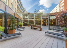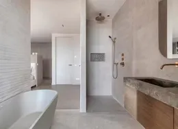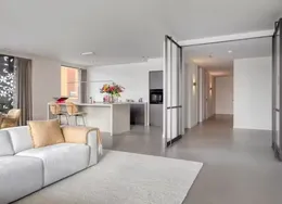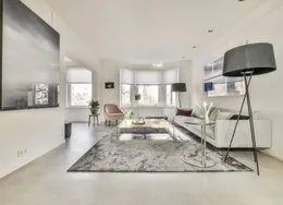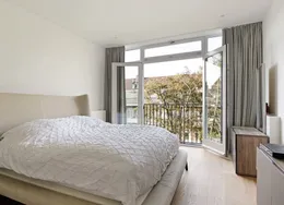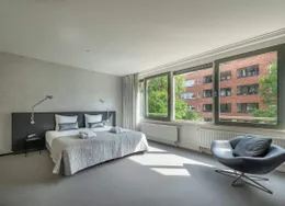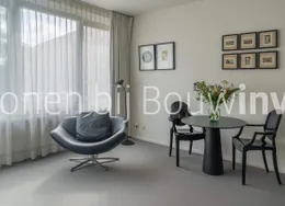 . Description. Stylish high-end ground floor apartment with 3 bedrooms, two bathrooms and a South-facing garden. The building is from 1936 but the apartment has been completely renovated under architecture and inside it feels like a modern villa. The apartment has a Domotica and Sonos sound system.. The apartment is located in the most desirable part of the Rivierenbuurt near the Apollolaan, the Beethovenstraat, and the Scheldestraat with plenty of shops and restaurants. The Amstel river is within walking distance as well as the Beatrixpark.. For daily shopping, the Pijp with the Albert Cuyp market is easy to reach by foot or bike.. The public transport is excellent, with tram and bus connections around the corner and the Station Rai with train and metro connections at a short distance.. LAYOUT. Private entrance on the ground floor. In the hall, you find a separate toilet. The open plan living is at the front facing the canal. The Bulthaup kitchen with an island is facing the garden with sliding doors to experience inside-outside living.. In the garden, there are some small trees to give more privacy and there is a sunscreen to protect from the sun.. The stairs lead to the first floor with three spacious bedrooms and two bathrooms. One bathroom has a bathtub, double sink and shower. The second bathroom has a shower and sink. On this floor, there is a second toilet. At the back, there is a balcony.. This is an amazing property in a very good location!. This non-binding rental information has been compiled by our office with the utmost care based on the information provided to us by the landlord. Therefore, we cannot provide any guarantees, nor can we accept any liability for this information in any way. All dimensions are indicative and The Rental Agency accepts no liability for deviations..