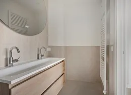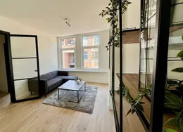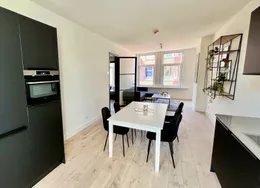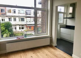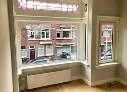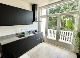 . Beschrijving. Renovated and modern two bedroom apartment with balcony in the city centre. Design kitchen with all comforts and luxurious bathroom with walk-in shower. Spacious and bright living room with trendy and comfortable furniture and ensuite dining room. The apartment comes turn-key. Ideal location in the popular ‘Zeeheldenkwartier’ near many of the international embassies, one block away from the center of The Hague, public transport and shops.. Layout. Secure building entrance with stairs to second floor. Bright ensuite living/dining room with cupboard separation and sliding doors with original stained glass. Characteristic heating covers. Opening doors to balcony. Contemporary, design kitchen fitted with dishwasher, fridge/freezer, stove, exhaust fan, oven, ample cupboard space and access to balcony. Spacious, master bedroom with double bed and built-in wardrobes, opening doors to balcony. Ensuite, luxurious bathroom with walk-in shower, jacuzzi and storage space. Separate toilet accessible from both the bathroom and hallway through connecting doors. Spacious, second bedroom / study fitted with bed and wadrobe. Woorden flooring throughout.. Located at the corner of the Zoutmanstraat and Torenstraat in the city centre and in front of tram stop 16, bringing Statenkwartier and OPCW, ICTY and Europol within 10 minutes reach. The city centre and The Hague central train station can be reached within 5 minutes.. Key aspects. - Fully furnished. - Turn-key. - Renovated. - Located in the city centre. - Spacious balcony. - Dishwasher. - Washing machine. - Design kitchen. - Luxurious bathroom with jacuzzi. - Wooden flooring. Rental price of € 2995,- excluding utilities - Furnished.