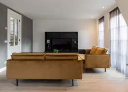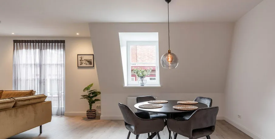***** Luxuriously furnished and spacious 3-bedroom maisonette, with private roof terrace (22m2), built in 2022. The wooden staircase in the photo will be replaced in December for a beautiful Belgian bluestone staircase.. *Corporates are more than welcome to rent for their staff.. This furnished 3 bedroom apartment is priced for € 3250,00 including utility bills.. Behind this beautifully façade lies this hidden gem, a luxuriously furnished home. Built in 2022 and having authentic details and a lovely wooden floor. Wonderfully light, very spacious (3 bedrooms) and optimal living comfort are the other features of this lovely home. You are close to bars and restaurants, where you can sit down on the terrace. Or you can go straight to the shops and restaurants of the historic city center of Hoorn. Do you need a temporary stay? That is fine here, the house is luxerious furnished for a long-term stay. Are you taking this great opportunity to enjoy a wonderful home in a great A-location?. The city centre of Hoorn is very popular and is characterized by the characteristic old buildings. The house is conveniently located in relation to the roads (A7), public transport (Central Station about a 5-minute walk away) and is located in the bustling city center. There are several supermarkets, specialty shops and night shops in the immediate vicinity. In no time you will be on the Kleine Noord, Grote Noord, the Roode Steen or the Kerkplein with various catering spots and unique shops. You can also take a lovely walk towards the harbour or Julianapark and discover the history of Hoorn, a beautiful city next to the Markermeer. The theater and the beach at the lake are hotspots to relax and meet your friends.. Ground floor:. Private entrance with a staircase to the first floor.. 1st floor:. The living room is spacious and has plenty of natural daylight. The walls and ceiling are neatly finished. The sitting area has a lovely setup with 2 sofas and a large flat screen Smart TV. The dining table has a Scandinavian look and you can enjoy your dinner there. The kitchen is fully equipped; cooking area, oven/microwave, dishwasher, refrigerator up to and including coffee machine.. On the same floor are the toilet, the luxurious bathroom and two spacious and furnished bedrooms. Every room in this home is finished with high-quality materials and a sophisticated selection of lighting, window coverings and designer furniture. In this house you will experience the ultimate living experience.. 2nd floor. Here is the third bedroom with air conditioning and the private roof terrace. From this bedroom you can walk straight onto your private roof terrace! Coffee in your hand and you can wake up peacefully. The roof terrace is ideally located, here the sun shines all day!. The location is perfect, in the vibrant city center and also close to roads and public transport. You only need to bring your suitcases, your new home is fully equipped to have you as his new resident(s).. Features:. * Energy label A. * Luxury furnishings and inventory. * Private roof terrace. * Including service costs. * Indoor private storage space in central hall. * Uniquely located in the center of Hoorn. * Creative and enterprising environment. * Very suitable for living and working. * Close to the intercity train station and the A7 motorway.. * Amsterdam 25 minutes by car or train.. * Corporate Housing. Rent conditions:. Rent furnished € 3.250,00. Including advance utility bills € 150. Including service costs. 2 month deposit. Short term rent negiotable. No pets. No smoking. Excluding cleaning cost € 250,00. Interested? And do you want to view? Then we would like to know some more information from you. We do this to avoid disappointment. Based on the information provided, we can check whether you meet the conditions set by our clients.. -Download the interest form, fill it in with your details and email us this information. Feel free to call us if you have any questions!. To be eligible for a rental property, we use a number of general allocation criteria:. -Your gross monthly income (including holiday allowance and fixed bonuses/allowances) must be 3.5 times the monthly rent.. -In most cases, your partner's income is counted for 1/3.. -You must have an employment contract with a term of at least one year at the time the lease will start.. If you want to rent the property after viewing and our client agrees, we will invite you to the screening process via email.. Keep in mind that the system requires multiple documents to perform a proper screening.. -Copy Id. -3 recent payslips. -Employer's statement. -Bank statement with paid wages. -Extract BRP. -Landlord statement
