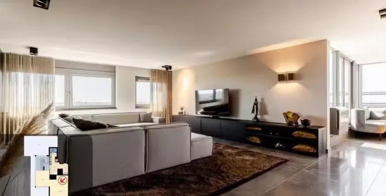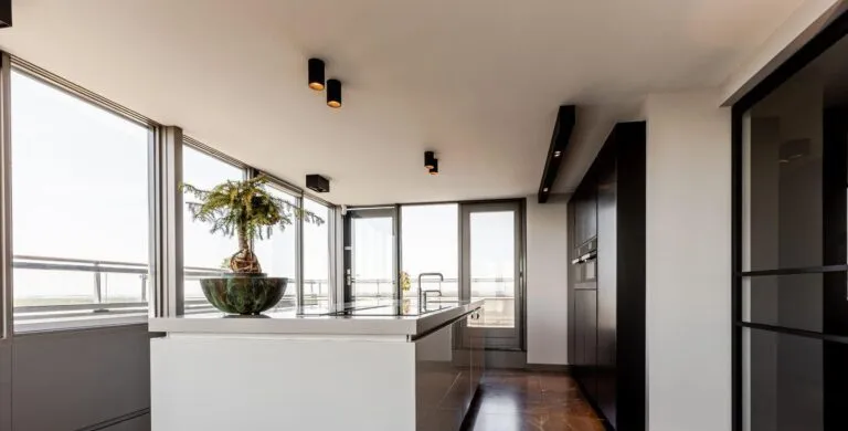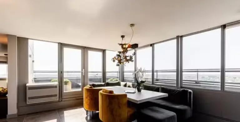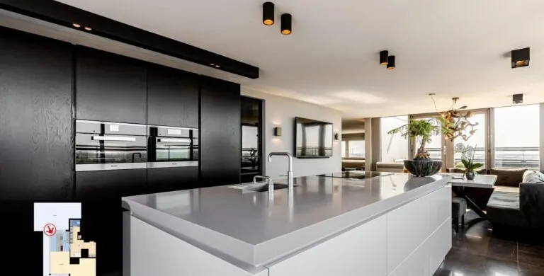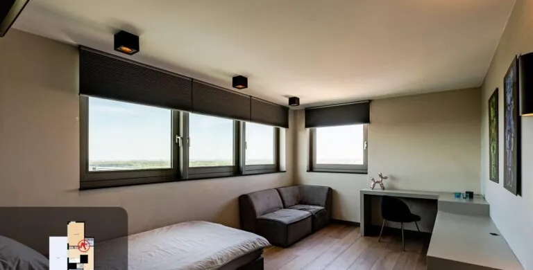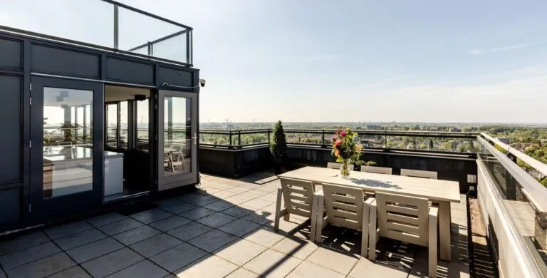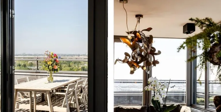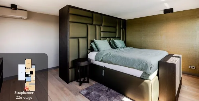 . Beschrijving. Uniek Penthouse met Spectaculair Uitzicht en Drie Woonlagen. Op de bovenste verdiepingen van het hoogste gebouw van Vlaardingen bevindt zich dit indrukwekkende penthouse van ca. 191 m², volledig gerenoveerd in 2017 en tot in detail afgewerkt. Verdeeld over de 21e, 22e en 23e verdieping geniet u hier van panoramisch uitzicht, ongeëvenaarde luxe en volop leefruimte – op slechts enkele minuten van bruisend Rotterdam.. Luxe Woonruimtes en Designkeuken. De royale woonkamer straalt elegantie uit met een natuurstenen vloer, maatwerkkasten en directe toegang tot het zonnige dakterras. De open keuken is een droom voor kookliefhebbers: voorzien van topklasse Miele-apparatuur, een exclusief keukenblad en een Samsung Wall TV. Vloerverwarming, vloerkoeling en een nieuwe airco (2023) garanderen maximaal comfort.. Slaapverdieping en Badkamer. De masterbedroom is uitgerust met maatwerkkasten, een verhoogd bed, luxe dressoir en Samsung TV. De tweede slaapkamer is ruim en licht. De badkamer, volledig uitgevoerd in marmer, biedt een royale inloopdouche met regendouche, een maatwerk wastafelmeubel en spiegelwand. Een aparte wasruimte met nieuwe wasmachine en droger (2023) is aanwezig.. Torenkamer & Dakterrassen. De 23e verdieping herbergt de iconische torenkamer met 360° uitzicht – een unieke privéplek. De twee grote dakterrassen maken dit penthouse ideaal voor buitenleven op grote hoogte.. Overige Pluspunten. Volledig gemeubileerd, grotendeels nieuwe meubels (2023/2024). Philips Hue verlichting door de hele woning. Parkeerplaats te huur (ca. € 60 p.m.). Berging op de begane grond. Centrale entree met cameratoezicht en video-installatie. Wonen op het hoogste niveau van Vlaardingen. Hier combineert u luxe, comfort en een spectaculair uitzicht – een woning waar u direct kunt intrekken en elke dag geniet van het beste dat wonen te bieden heeft..