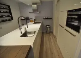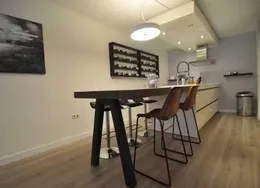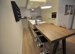 . Beschrijving. Type: tussenwoning. Locatie: Achtse Barrier / Eindhoven. Moderne tussenwoning met carport, Z-vormige living met half open keuken, 3 slaapkamers, complete badkamer, berging annex multifunctionele ruimte en tuin op zonzijde. De woning is gelegen op een rustige en fraaie locatie aan verkeersarm pleintje met speelvoorzieningen in de woonwijk Achtse Barrier, nabij scholen, winkels en uitvalswegen.. Indeling: Begane grond: Overdekt entree via carport aan de voorzijde. Ruime, lichte hal voorzien van laminaatvloer, stucwerk wanden, spuitwerk plafond, garderobe, trapopgang en meterkast (glasvezelaansluiting + 5 groepen + 1 aardlekschakelaar).. Toilet: Modern toilet voorzien van tegelvloer, gedeeltelijk betegelde wanden, raampje en fonteintje.. Woonkamer: Z-vormige woonkamer voorzien van laminaatvloer, prettige lichtinval via ruime raampartijen, praktische bergkast onder de trapopgang (inclusief verlichting, elektra en provisieruimte) en deur naar de achtertuin met (handmatig) bedienbare rolluiken.. Keuken: Aan de achterzijde gelegen, half open keuken voorzien van laminaatvloer en lichte keukeninstallatie in L-vorm met diverse onder- en bovenkasten, apothekerskast, laden, kunststof werkblad, betegelde achterwand, rvs spoelbak, 5-pits gaskookplaat, vaatwasser, rvs afzuigschouw, koelkast en oven.. Berging annex multifunctionele ruimte: Via de keuken is de inpandige berging annex multifunctionele ruimte beschikbaar. Thans is deze ruimte in gebruik als werkkamer / study voorzien van laminaatvloer, raampartij, deur naar de tuin met (handmatig bedienbaar) rolluik en vaste schuifkastenwand inclusief provisieruimte, aansluiting voor een wasmachine + droger en opstelling van een cv combiketel.. 1e Verdieping: Overloop met witte laminaatvloer, stucwerk wanden, spuitwerk plafond, ingebouwde vaste kast en toegang tot alle vertrekken.. Slaapkamer I: gelegen aan de achterzijde. Voorzien van witte laminaatvloer en (handmatig bedienbaar) rolluik. Slaapkamer II: ruime ouderslaapkamer gelegen aan de achterzijde. Voorzien van witte laminaatvloer. Slaapkamer III: ruime slaapkamer gelegen aan de voorzijde. Voorzien van witte laminaatvloer.. Badkamer: Moderne en complete badkamer voorzien van tegelvloer, geheel betegelde wanden, dakvenster, design radiator, vaste wastafel in meubel, douchecabine met thermostaatkraan, 2e toilet met hangend closet en ligbad met thermostaatkraan.. Voortuin: Diepe voortuin met bestrating, beplanting en oprit met parkeerplaats voor een auto.. Achtertuin: Op het zonnige zuiden gelegen achtertuin met terras, schutting aan beide zijden, beplanting, houten tuinhuis en achterom via houten poort.. Minimale huurperiode: 12 kalendermaanden. De huurprijs is exclusief gas-, water- en elektraverbruik, gemeentelijke belastingen en televisie/internetabonnement..