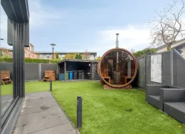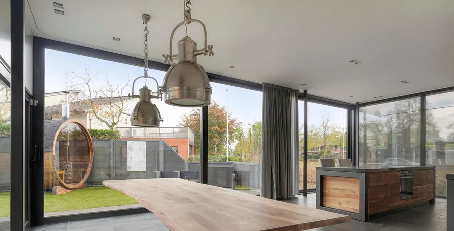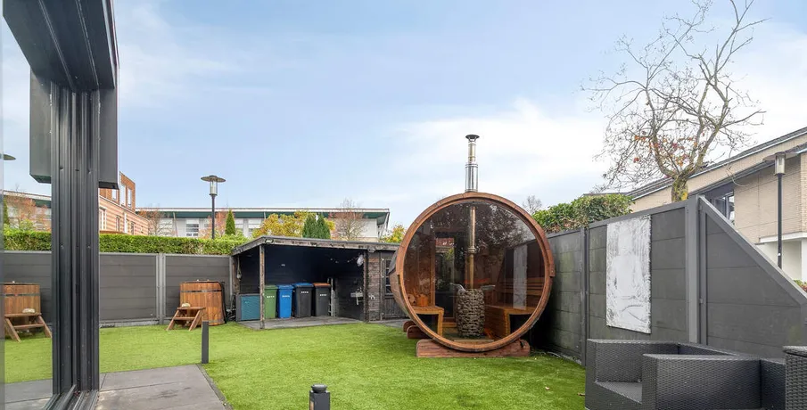 . TE HUUR VOOR MAXIMAAL 12 MAANDEN : UNIEKE ZEER ROYALE 2/1 KAP WONING AAN HET WATER IN AMERSFOORT (wijk Kattenbroek). Op een prachtige locatie in de gewilde wijk Kattenbroek ligt deze opvallende, fantastische 2-onder-1-kap-woning van maar liefst 260 m² woonoppervlak op een perceel van 351 m². Met 5 tot 6 ruime slaapkamers, een souterrain (multifunctionele ruimte) en een brede tuin aan het water, is dit huis ideaal voor wie comfortabel, stijlvol en rustig wil wonen met alle voorzieningen dichtbij.. Deze moderne uitgevoerde woning (bouwjaar 1993) onderscheidt zich door haar speelse split-level indeling, grote raampartijen en strakke architectuur, waardoor het hele huis baadt in het licht. De royale tuin op het zuiden biedt volop zon en beschikt over een sfeervol overdekt terras aan het water – een heerlijke plek om te ontspannen en te genieten van lange zomeravonden.. Indeling. Begane grond:. Entree/hal garderobe, toilet en diepe bergkast.. Riante, uitgebouwde woonkeuken met kookeiland met veel laden, bergruimte, complete inbouwapparatuur, dubbele spoelbak, koelkastladen en een stijlvolle kastenwand.. Ramen tot op de vloer met uitzicht op de tuin en het water. Gehele vloer voorzien van vloerverwarming.. Via speelse traptreden naar de verhoogde, gezellige woonkamer met natuurstenen vloer, vloerverarming, veel lichtinval en vrij uitzicht.. Souterrain:. Multifunctionele ruimte met inpandige kastenwand – ook ideaal als 6e slaapkamer, fitnessruimte of kantoor/praktijk aan huis.. Eerste verdieping:. Luxe badkamer met ligbad, ruime inloopdouche, dubbele wastafelmeubel, designradiator, zwevend toilet en vloerverwarming.. Hoofdslaapkamer met aangrenzende garderobekamer, videkamer met doorkijk naar de woonkamer. Tweede verdieping:. Twee slaapkamers en een tweede badkamer met douche, wastafel en wasmachine-/drogeropstelling.. Derde verdieping en Zonder:. Slaapkamer en grote zolderkamer met Velux dakraam – perfect als slaapkamer, werkruimte of speelzolder.. Inventaris:. De woning is geheel gestoffeerd. Lange moderne eettafel in woonkamer met daarboven twee lampen. 2 grote TV's aan de wand (in woon- en hoofdslaapkamer). Fraaie lange lage kast in de woonkamer. Salontafel in woonkamer. Wasmachine en wasdroger op verdieping. Pluspunten van deze woning:. Maar liefst 260 m² woonoppervlak. 5-6 slaapkamers. Luxe riante woonkeuken. Twee moderne badkamers. Officeroom/werkkamer met vide. Souterrain met veel gebruiksmogelijkheden. Royale, zonnige tuin met overdekt terras aan het water. Houten tuinberging. Sauna in de tuin. Energielabel B. Centrale stofzuiginstallatie. Gelegen in een rustige en groene buurt met scholen, winkels en uitvalswegen binnen handbereik. Deze woning is allesbehalve standaard,,stijlvol, licht, ruim en vol verrassende details. Een plek waar je je direct thuis voelt.. Benieuwd naar deze unieke woning?. Wij nodigen je van harte uit om zelf de sfeer en ruimte te komen ervaren.. Huurprijs € 4.250,-- per maand, exclusief gas, water, elektra, internet en gebruikerslasten gemeentelijke heffingen. Beschikbaarheid: Per direct in overleg voor een huurperiode van MAXIMAAL 12 MAANDEN. Locatie: Kattenbroek, Amersfoort.. Interesse? Neem snel contact op voor een bezichtiging!. Aan deze tekst kunnen geen rechten worden ontleend. Voorbehoud gunning eigenaar.