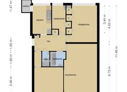 3 kamers op 80 m