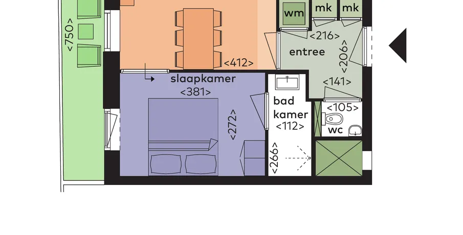 2 kamers op 38 m2