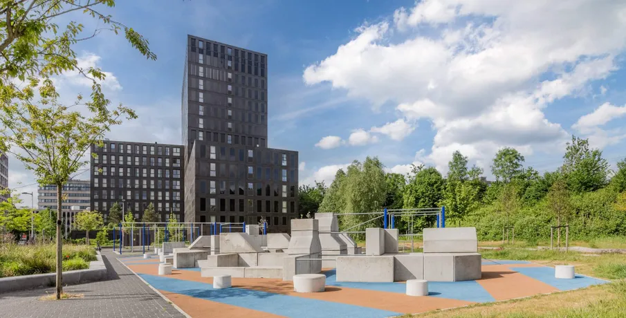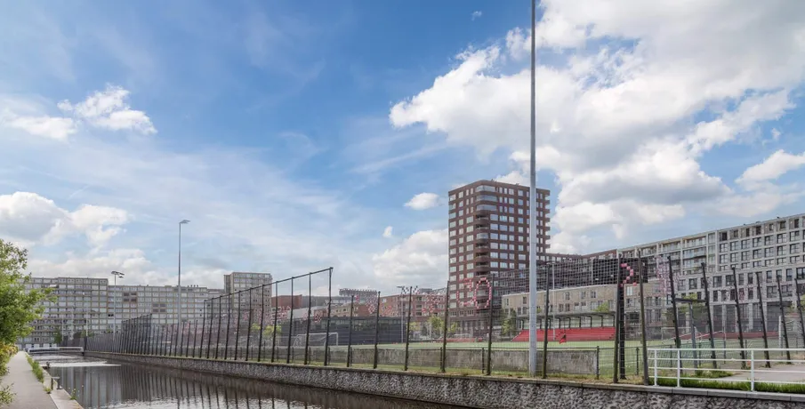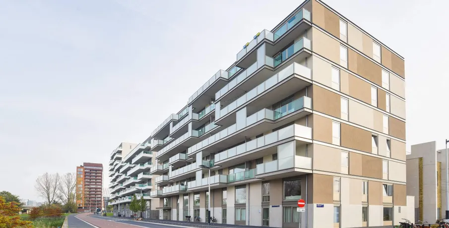 . Wim van Estlaan 1-34 Amsterdam. Het moderne complex “Laan van Spartaan” is gebouwd in 2020 en bestaat uit 34 ruime appartementen, variërend in 2-, 3- en 4-kamerwoningen. Zij hebben allen een fijne woonkamer, compleet ingerichte keuken, ruime badkamer met douche en brede wastafel en een zonnige buitenruimte gelegen op het westen. En misschien wel het fijnste voor een woning in Amsterdam: een parkeerplaats in de ondergelegen garage is bij de huurprijs inbegrepen!. Indeling:. Vanuit de hal heb je toegang tot alle vertrekken: een slaapkamer, de woonkamer met open keuken welke is voorzien alle benodigde inbouwapparatuur zoals een koelkast met vriesvak, combimagnetron, vaatwasser, inductiekookplaat. Verder een separaat toilet en de badkamer met ruime inloopdouche, wastafel en tweede toilet, ruime berging met aansluiting voor de wasmachine en wasdroger.. Wonen op een rustige locatie, vlakbij de stad. Laan van Spartaan is een jonge, frisse woonwijk in Bos en Lommer met een 21e eeuws en stads-sportief karakter. Laan van Spartaan ligt maar nét buiten de Ringweg A10 en dus vlakbij de bruisende binnenstad van Amsterdam (10 minuten met de tram of fiets).. Het hart van de buurt bestaat uit gloednieuwe sportvoorzieningen. Daaromheen liggen grote en kleinere gebouwen met hofjes, tuinen, appartementen, gezinswoningen en diverse buurtvoorzieningen. Je kunt Laan van Spartaan vanaf 2 kanten binnenkomen: via de Jan van Galenstraat aan de zuidkant (3 afslagen de buurt in) of vanaf de noordzijde via 1 van de 2 bruggen over de Erasmusgracht (maar dan alleen te voet of per fiets).. Er is geen doorgaand verkeer, alleen bestemmingsverkeer in Laan van Spartaan: lekker veilig én rustig dus. Levendigheid is er trouwens wel genoeg, want op de groene sportvelden zijn altijd wel mensen aan het voetballen, joggen of tai-chiën. En overigens: in de omgeving van Laan van Spartaan - vooral in het sterk opkomende Bos en Lommer - is van alles te doen, te eten en te beleven.. Graag wijzen wij u erop dat de informatie en afbeeldingen op de website ter indicatie zijn en dat hieraan geen rechten kunnen worden ontleend..