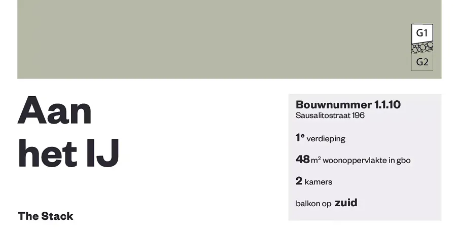 Modern en licht appartement in The Stack. In het iconische gebouw The Stack, gelegen aan het IJ, bevindt zich dit moderne tweekamerappartement op de eerste verdieping. Met een woonoppervlakte van circa 48 m2 is dit een comfortabele en overzichtelijke woning.. Woonkamer. De woonkamer met open keuken is licht en ruim dankzij de grote ramen. Het is een prettige leefruimte waar wonen en koken mooi samenkomen. Vanuit de woonkamer heb je direct toegang tot het balkon.. Balkon. Het balkon is gelegen op het westen en biedt een fijne plek om aan het einde van de dag buiten te zitten en van de avondzon te genieten.. Keuken. De open keuken sluit naadloos aan op de woonkamer en is praktisch ingericht met inbouwapparatuur.. Slaapkamer. De slaapkamer ligt rustig en biedt voldoende ruimte voor een groot bed en kastruimte. Een fijne plek om tot rust te komen.. Badkamer. De badkamer is strak afgewerkt en voorzien van alle benodigde gemakken voor comfortabel dagelijks gebruik.. Omgeving. De woning ligt in een groene en goed bereikbare buurt in Amsterdam-Noord. Winkels, horeca en het levendige stadsleven zijn dichtbij, terwijl je thuis juist rust en comfort ervaart.. Let op!. De getoonde afbeeldingen zijn ter illustratie en kunnen dus afwijken van de werkelijkheid.. Interesse?. Ga in de woningpresentatie op onze website naar [REAGEER] en geef hiermee aan dat je geïnteresseerd bent.. Inkomensnormen en inschrijfdocumentatie. Hiervoor verwijzen we je door naar onze website.. Borg. Verhuurder kan om haar moverende redenen borg vragen. Dit kan o.a. afhankelijk zijn van de werksituatie van de kandidaten.. Huurprijswijziging. Voor huurwoningen met een geliberaliseerde huurprijs geldt een jaarlijkse huurverhoging van maximaal CPI +1%, tenzij er in enig jaar door de Rijksoverheid een andere maximale huurprijsverhoging voor geliberaliseerde zelfstandige huurwoningen is vastgesteld. In het geval van een gereguleerde huurprijs bepaalt de Rijksoverheid jaarlijks het percentage van de huurverhoging.. **Vb&t streeft ernaar om je zo goed mogelijk aan een passende huurwoning te helpen. Om dit te realiseren verzoeken wij je om jezelf in te schrijven via onze website. Inschrijven is altijd kosteloos en geheel vrijblijvend. Je kunt je inschrijven voor woningen die direct beschikbaar zijn, maar ook voor woningen die mogelijk toekomstig beschikbaar komen. Op basis van de door jou verstrekte informatie word je door ons automatisch per e-mail geïnformeerd wanneer er woningen beschikbaar zijn die voldoen aan je woonwensen. Je kunt gratis en eenvoudig inschrijven op onze website.**. **Deze informatie is met de grootst mogelijke zorg samengesteld. Toch kunnen wij niet altijd voorkomen dat de informatie enigszins afwijkt van hetgeen je in of rond de woning ziet of hebt gezien. Dit kan met name gelden voor de brochure tekst, de plattegronden en maatvoeringen. Hieraan kunnen dan ook geen rechten worden ontleend.**. Verberg volledige omschrijving.... Algemeen: : Servicekosten: : € 90,-: Energielabel: : A+: Aanvaarding: : 1-3-2026: Huurtermijn (min.): : 12 maanden: Aantal reacties: : 201: Overige kosten: : Waarborgsom: : € 0,-: Bouw: : Soort object: : Appartement: Soort bouw: : Bestaande bouw: Bouwjaar: : 2024: Soort dak: : Plat dak: Oppervlakten en inhoud: : Woonoppervlakte: : 48 m²: Inhoud: : 125 m³: Aanvullende informatie: : WOZ waarde: : € 441.000,-: WOZ peildatum: : 1-1-2024: WWS-punten: : 198