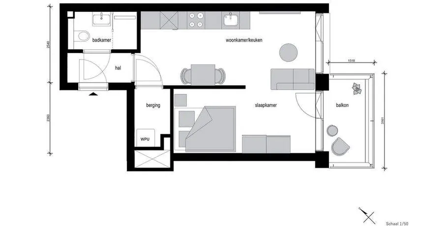 1 kamers appartement van 43 m2