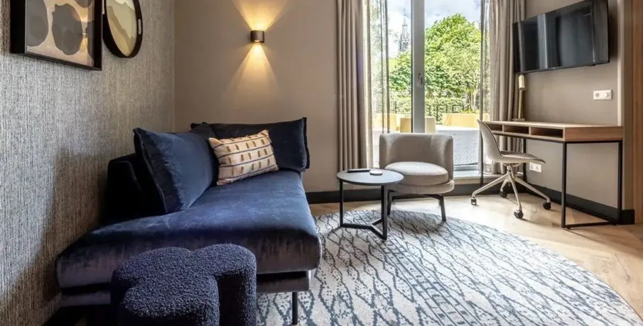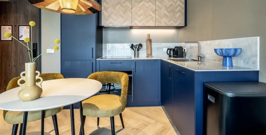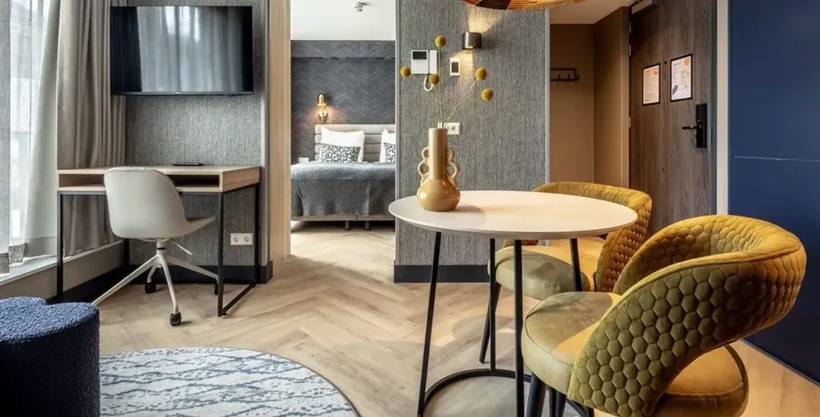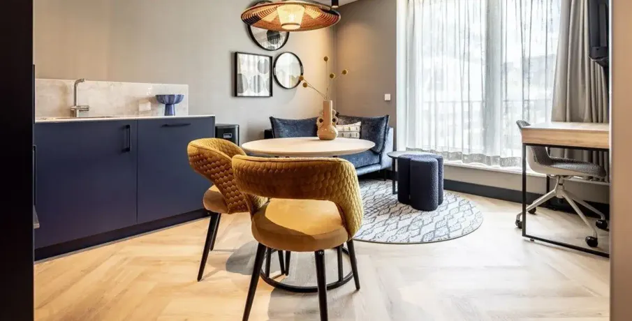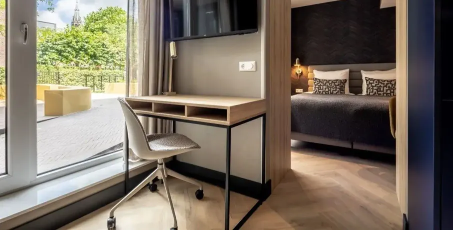 . Description. **SHORT-STAY ONLY**. Comfortable, fully furnished one-bedroom apartment boasting an EnergyLabel A+++ in the heart of Delft’s historic city centre. Located on one of the most beautiful canals and only an 8-minute walk from Delft Central Station.. Layout. The building features a central lobby with a staffed reception, coffee lounge and free gym. From here you can access the lift and staircase to the apartments. This ground-floor one-bedroom apartment includes a fully equipped kitchen with a built-in washer/dryer. The living area is tastefully furnished with a comfortable sofa, smart TV, dining table and working desk. The bedroom offers a 180×200 cm bed.. About the complex. BizStay Delft comprises 31 short-stay apartments, ranging from studios to 1-, 2- and 3-bedroom units. All are fully equipped for stays of several days, weeks or months. Residents enjoy a communal courtyard garden, modern gym and coffee lounge. The building has a lift and is highly sustainable thanks to 165 solar panels. A large public car park is just a 3-minute walk away.. Key details. · Energylabel A+++. · This is a short-stay apartment. It can only be rented for a period of 2 - 6 months. · Basic rent inclusing furnishing, fittings and services €2.150 incl. VAT per month. · Fixed monthly charge for utilities, taxes, TV and internet: €350 (incl VAT). · Mandatory final cleaning fee: from €99 (incl. VAT). · Bed- and kitchen linen, towels included. · Deposit: €500. · Registration with the municipality possible. · Air conditioning and floor heating. · Fully furnished. · Mandatory end cleaning. · No pets allowed. · Suitable for a single person or a couple (maximum). · Not suitable for children. For more information about this apartment or other options, please contact our office at EMAIL – our colleagues will be happy to inform you about the possibilities.. -------------------------------------------------------------------------------------------------------------------------------------------------------------------------. Comfortabel en volledig gemeubileerd 2-kamerappartement met een EnergieLabel A+++ in het hart van de historische binnenstad van Delft. Gelegen aan een van de mooiste grachten en op slechts 8 minuten lopen van station Delft Centraal.. Indeling. Het gebouw beschikt over een centrale entree met bemande receptie, koffielounge en gratis fitnessruimte. Vanuit hier zijn lift en trap naar de appartementen bereikbaar.. Dit appartement ligt op de begane grond en heeft een volledig ingerichte keuken met ingebouwde was-/droogcombinatie. De woonkamer is smaakvol ingericht met een comfortabele bank, smart-tv, eettafel en bureau. De slaapkamer heeft een 180×200 cm bed.. Over het complex. BizStay Delft telt 31 short-stay appartementen, van studio’s tot 1-, 2- en 3-kamerappartementen. Bewoners hebben toegang tot een gezamenlijke binnentuin, moderne fitnessruimte en koffielounge. Het gebouw heeft een lift en is dankzij 165 zonnepanelen zeer duurzaam. Een grote openbare parkeergarage ligt op 3 minuten lopen.. Belangrijke informatie. • Energie label A+++. • Dit is een short-stay appartement. De huurperiode is 2 tot maximaal 6 maanden. • Huurprijs inclusief stoffering, meubilering en services € 2.150 per maand (incl. btw). • Vaste maandlasten voor nuts, belastingen, tv en internet € 350 (incl btw). • Verplichte eindschoonmaak vanaf €99 (incl btw). • Borg € 500. • Bed-, keukenlinnen en handdoeken inbegrepen. • Inschrijving bij gemeente mogelijk. • Airconditioning en vloerverwarming aanwezig. • Volledig gemeubileerd. • Verplichte eindschoonmaak. • Geen huisdieren toegestaan. • Geschikt voor maximaal één persoon of een stel. • Niet geschikt voor kinderen. Voor meer informatie kunt u contact opnemen met ons kantoor via EMAIL – onze collega’s informeren u graag over de mogelijkheden..