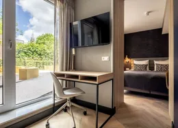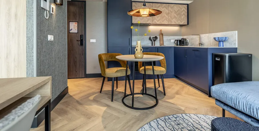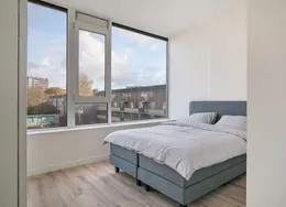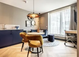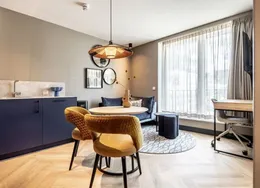 . **SHORT-STAY ONLY**. Comfortable, fully furnished one-bedroom apartment boasting an EnergyLabel A+++ in the heart of Delft’s historic city centre. Located on one of the most beautiful canals and only an 8-minute walk from Delft Central Station.. Layout. The building features a central lobby with a staffed reception, coffee lounge and free gym. From here you can access the lift and staircase to the apartments. This ground-floor one-bedroom apartment includes a fully equipped kitchen with a built-in washer/dryer. The living area is tastefully furnished with a comfortable sofa, smart TV, dining table and working desk. The bedroom offers a 180×200 cm bed.. About the complex. BizStay Delft comprises 31 short-stay apartments, ranging from studios to 1-, 2- and 3-bedroom units. All are fully equipped for stays of several days, weeks or months. Residents enjoy a communal courtyard garden, modern gym and coffee lounge. The building has a lift and is highly sustainable thanks to 165 solar panels. A large public car park is just a 3-minute walk away.. Key details. · Energylabel A+++. · This is a short-stay apartment. It can only be rented for a period of 2 - 6 months. · Basic rent inclusing furnishing, fittings and services €2.150 incl. VAT per month. · Fixed monthly charge for utilities, taxes, TV and internet: €350 (incl VAT). · Mandatory final cleaning fee: from €99 (incl. VAT). · Bed- and kitchen linen, towels included. · Deposit: €500. · Registration with the municipality possible. · Air conditioning and floor heating. · Fully furnished. · Mandatory end cleaning. · No pets allowed. · Suitable for a single person or a couple (maximum). · Not suitable for children. For more information about this apartment or other options, please contact our office at EMAIL – our colleagues will be happy to inform you about the possibilities.. -------------------------------------------------------------------------------------------------------------------------------------------------------------------------. Comfortabel en volledig gemeubileerd 2-kamerappartement met een EnergieLabel A+++ in het hart van de historische binnenstad van Delft. Gelegen aan een van de mooiste grachten en op slechts 8 minuten lopen van station Delft Centraal.. Indeling. Het gebouw beschikt over een centrale entree met bemande receptie, koffielounge en gratis fitnessruimte. Vanuit hier zijn lift en trap naar de appartementen bereikbaar.. Dit appartement ligt op de begane grond en heeft een volledig ingerichte keuken met ingebouwde was-/droogcombinatie. De woonkamer is smaakvol ingericht met een comfortabele bank, smart-tv, eettafel en bureau. De slaapkamer heeft een 180×200 cm bed.. Over het complex. BizStay Delft telt 31 short-stay appartementen, van studio’s tot 1-, 2- en 3-kamerappartementen. Bewoners hebben toegang tot een gezamenlijke binnentuin, moderne fitnessruimte en koffielounge. Het gebouw heeft een lift en is dankzij 165 zonnepanelen zeer duurzaam. Een grote openbare parkeergarage ligt op 3 minuten lopen.. Belangrijke informatie. • Energie label A+++. • Dit is een short-stay appartement. De huurperiode is 2 tot maximaal 6 maanden. • Huurprijs inclusief stoffering, meubilering en services € 2.150 per maand (incl. btw). • Vaste maandlasten voor nuts, belastingen, tv en internet € 350 (incl btw). • Verplichte eindschoonmaak vanaf €99 (incl btw). • Borg € 500. • Bed-, keukenlinnen en handdoeken inbegrepen. • Inschrijving bij gemeente mogelijk. • Airconditioning en vloerverwarming aanwezig. • Volledig gemeubileerd. • Verplichte eindschoonmaak. • Geen huisdieren toegestaan. • Geschikt voor maximaal één persoon of een stel. • Niet geschikt voor kinderen. Voor meer informatie kunt u contact opnemen met ons kantoor via EMAIL – onze collega’s informeren u graag over de mogelijkheden..