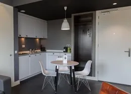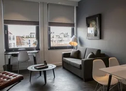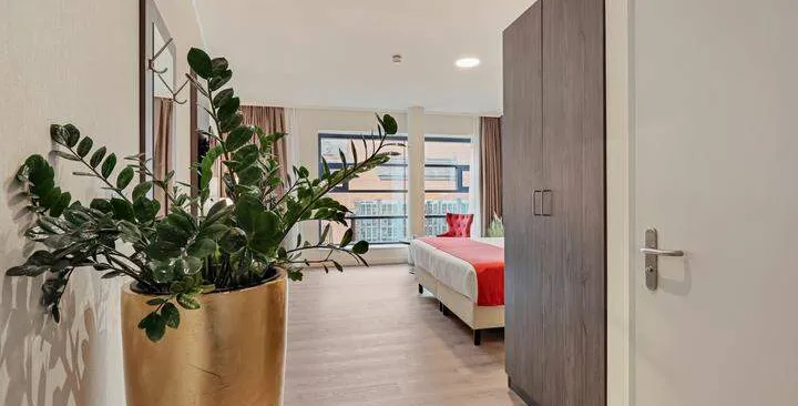 ENGLISH VERSION BELOW. Gelegen aan de middenin het bruisende centrum van Den Haag en tegenover de Bijenkorf, bieden wij u aan diverse volledig gemeubileerde, turn-key studio’s en appartementen, voor zowel short stay als long stay. Binnen loopafstand treft u een diversiteit aan winkels, bars, restaurants en cultuur. Het Centraal Station en het overig openbaar vervoer bevinden zich niet ver van de . Tegen een meerprijs kunt u parkeren in de parkeergarage onder het complex van waaruit u binnen enkele minuten zo op de snelweg richting Amsterdam, Utrecht of Rotterdam rijdt. Ook het strand van Scheveningen is vanuit het centrum snel te bereiken. Kortom, een perfecte locatie in de binnenstad van Den Haag om tijdelijk te verblijven.. De volledig turn-key appartementen hebben een wekelijkse schoonmaak en linnenservice welke zijn inbegrepen in de maandprijs. Diverse faciliteiten kunt u tevens zonder meerprijs benutten zoals bijvoorbeeld sporten in de aanwezige fitness ruimte. Parkeren is in abonnementsvorm mogelijk in een nabij gelegen parkeergarage. Alle moderne en volledig gemeubileerde appartementen zijn uitgerust met een zithoek, een bureau, thee- en koffiefaciliteiten, een flatscreen-tv met kabelzenders, een koelkast en een magnetron. Daarnaast is het complex voorzien van airconditioning.. De centrale locatie en de full service maken deze appartementen ideaal voor expats of mensen die opzoek zijn naar tijdelijke accommodatie. Door de inbegrepen gas-, water- en elektrakosten zijn deze studio’s en appartementen ook een voordelige huisvesting. Vanzelfsprekend kunnen deze full serviceappartementen ook een ideale oplossing bieden voor mensen die met relationele problemen kampen of in scheiding liggen.. Het complex biedt een ontbijtrestaurant aan, waar dagelijks een continentaal ontbijt wordt geserveerd, tegen een meerprijs van €10,- per persoon per dag. Aan de bar kunt u een drankje nuttigen of u kunt een bezoek brengen aan de diverse restaurants in de omgeving.. Wij bieden verschillende verblijfstypes aan. Vraag gerust naar de mogelijkheden en de beschikbaarheid.. De citytax bedraagt circa €5,- per persoon per dag extra.. Parkeren is mogelijk in abonnementsvorm in de nabij gelegen parkeergarages.. Inschrijving is niet mogelijk.. Interesse? Bezichtigingen zijn via ons kantoor 7 dagen per week op afspraak mogelijk.. Located on the in the middle of the bustling city center of The Hague and opposite the Bijenkorf, we offer you various fully furnished, turn-key studios and apartments, for both short stay and long stay. Within walking distance you will find a variety of shops, bars, restaurants and culture. The Central Station and other public transport are not far from the . For an additional charge you can park in the parking garage under the complex from where you can drive on the highway to Amsterdam, Utrecht or Rotterdam within a few minutes. The beach of Scheveningen can also be reached quickly from the center. In short, a perfect location in the center of The Hague for a temporary stay.. The turnkey apartments have a weekly cleaning and linen service which are included in the monthly price. You can also use various facilities at no extra cost, such as exercising in the fitness room. Parking is possible in a subscription form in a nearby parking garage. All modern and fully furnished apartments are equipped with a seating area, a desk, tea and coffee making facilities, a flat-screen TV with cable channels, a refrigerator and a microwave. In addition, the complex is air-conditioned.. The central location and full service make these apartments ideal for expats or people looking for temporary accommodation. Due to the included gas, water and electricity costs, these studios and apartments are also quite an affordable accommodation alternative. It goes without saying that these full service apartments can also offer an ideal solution for people who are experiencing relationship problems or are going through a divorce.. The complex offers a breakfast restaurant, where a continental breakfast is served daily, at an additional cost of €10 per person per day. You can have a drink at the bar or visit the various restaurants in the area.. We offer different accommodation types. Feel free to ask about the possibilities and availability.. The city tax is approximately €5 per person per day extra.. Parking is possible in subscription form in the nearby parking garages.. Registration is not possible.. Interested? Viewings are possible through our office 7 days a week by appointment.