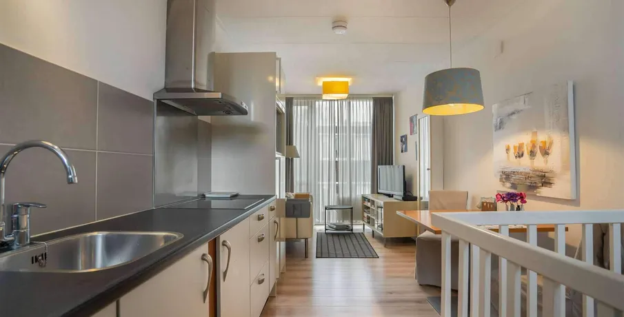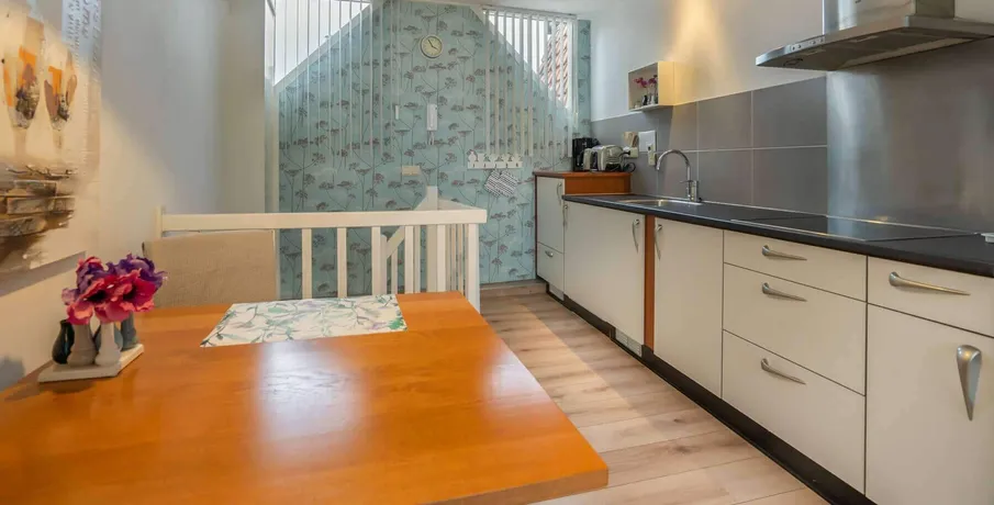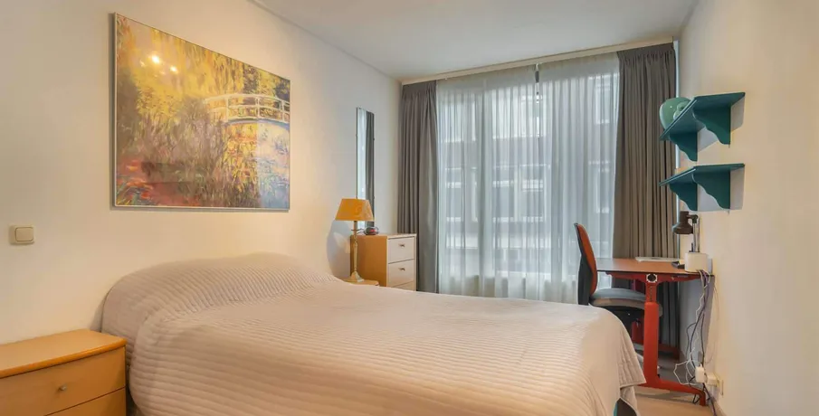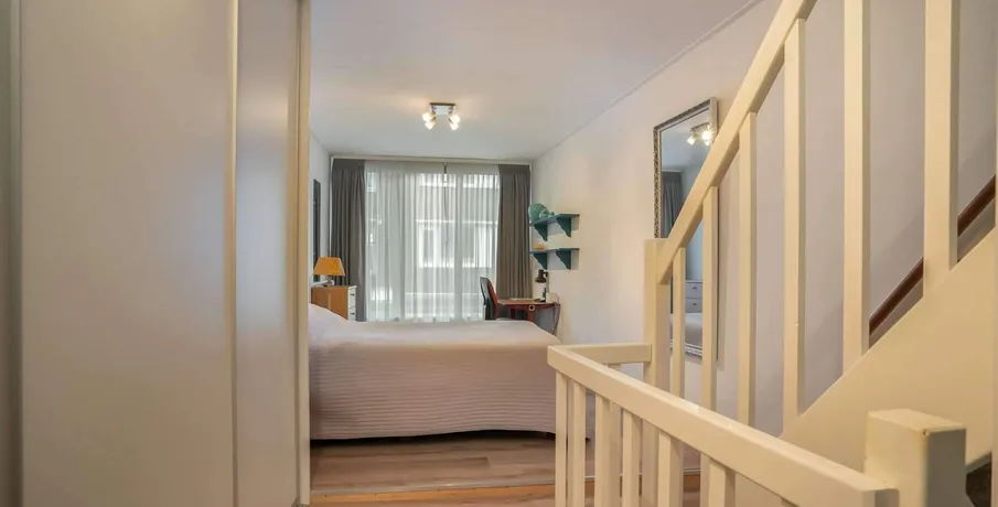 DescriptionAttention! Only suitable for 1 person! Hip living in Gorinchem is possible in this special fully furnished apartment located on the . The house has a living area of 123 m2 and was built in 1910.. The is located in the neighborhood Benedenstad. The neighborhood has relatively many young residents between the ages of 25 and 44. Furthermore, it is a relatively quiet neighborhood in terms of population density.. The house is easily accessible with many amenities nearby. Located within walking distance of the center of Gorinchem, walking distance from a supermarket and walking distance from a train station. In addition, the nearest exit road in the vicinity is only a 3-minute drive away. There are ample parking options for your car around the corner from the apartment. A parking permit is available for parking your car in the parking garage.. Layout. Ground floor:. Main entrance with long monumental corridor to the entrance of the apartment. The entrance provides access to a hall with stairs to the first floor and door to the bathroom. The beautiful modern and luxurious bathroom has a shower, toilet and washbasin. On the ground floor there is also a communal laundry room where you can use the communal washing machine and dryer.. 1st floor:. Via the stairs you reach the bedroom floor of the apartment with a beautiful bedroom which is equipped with a large wardrobe.. 2nd floor:. From the bedroom you reach the living area with cozy living room and open kitchen via a staircase. The kitchen is equipped with various built-in appliances, such as a dishwasher, ceramic hob, extractor hood, sink, fridge with freezer compartment and a freestanding combination oven and microwave.. In short, a wonderful ready-to-move-in fully furnished apartment that is definitely worth a visit!. – Pets are not allowed;. – Smoking is not allowed;. – Suitable for one person only..