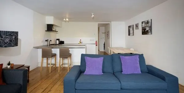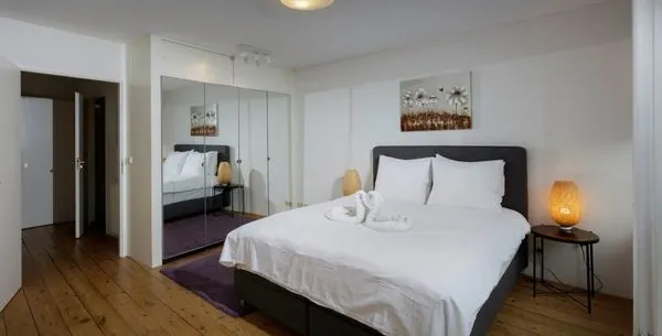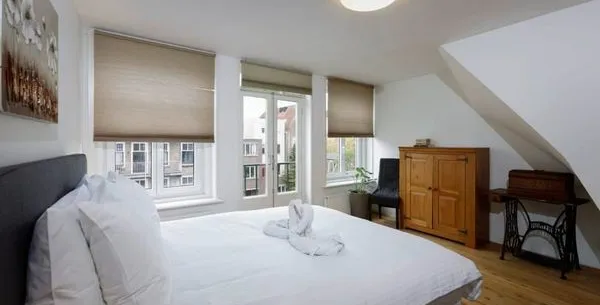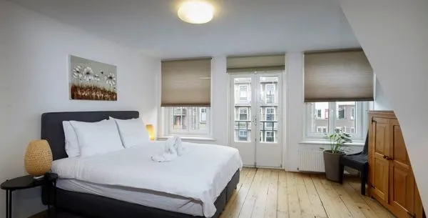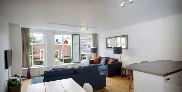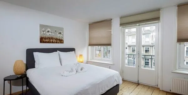 . Beschrijving. Deze moderne appartement in de Oude Looiersstraat, gelegen in het populaire Jordaan district van Amsterdam, biedt 55m2 aan comfortabele woonruimte. Het appartement bevat een slaapkamer met een king-size bed, een woonkamer met open ramen en een moderne keuken die volledig is uitgerust met een koelkast, vriezer, en vaatwasser. De open indeling, met frans deuren, zorgt voor een lichte, uitnodigend....