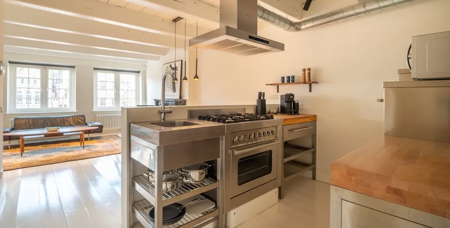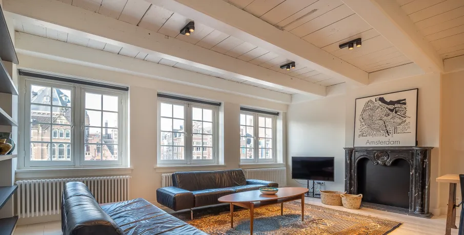 Completely renovated and located on the 2nd floor, we find this beautiful apartment. The apartment is located in a beautiful monumental building and has a lovely bright living room at the front and a spacious quiet bedroom at the rear, with custom made built-in wardrobes.. The is located right in the center and all imaginable amenities can be found nearby, such as cozy terraces, bars, restaurants and a very diverse range of shops. Furthermore, within walking distance of Dam Square, Kalverstraat, Nieuwmarkt and Central Station, where all public transport facilities (tram, bus, metro, train) are within walking distance.. Lay-out:. Central entrance and with the stairs to the 2nd floor. Entrance, spacious living room at the front with an open industrial kitchen (with various built-in appliances), separate toilet, spacious bedroom at the quiet rear, bathroom with shower and sink, separate space with wachingmachine and dryer.. Extra:. - furnished. - 1 bedroom. - newly renovated. - total 61m2
