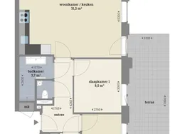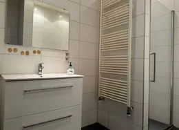 . Beschrijving. Dit 2-kamerappartement op de 9e verdieping biedt een oppervlakte van circa 56m2 en beschikt over een terras op het noordwesten. De luxe keuken is uitgerust met greeploze design kastjes en hoogwaardige apparatuur, waaronder een inductiekookplaat, koel-vriescombinatie, vaatwasser en combi-oven. De badkamer is voorzien van een brede wastafel, inloopdouche en designradiator, en er is ook een separa....