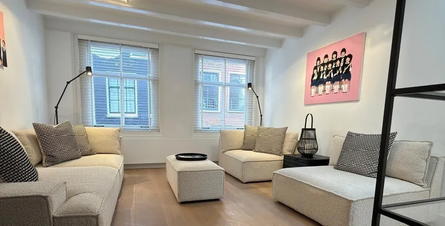 . Beschrijving. We are looking for a single or a couple with a stable income, without pets or children. Guarantors or home sharing will not be accepted.Unique and luxurious house (approximately 75m2) in the heart of the City and the Jordaan area divided over 3 floors. Very centrally located!Lay out:Ground floor: Private entrance on the ground floor with a hallway, laundry room and a dining and kitchen area wit....