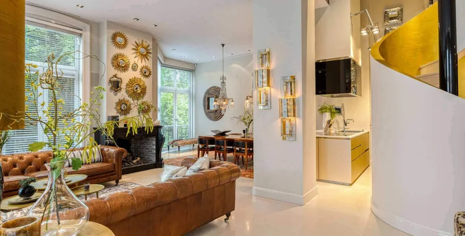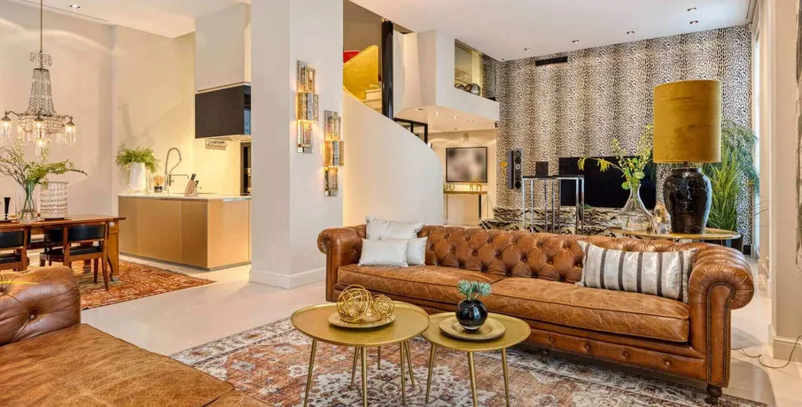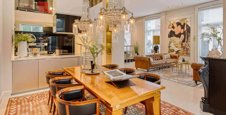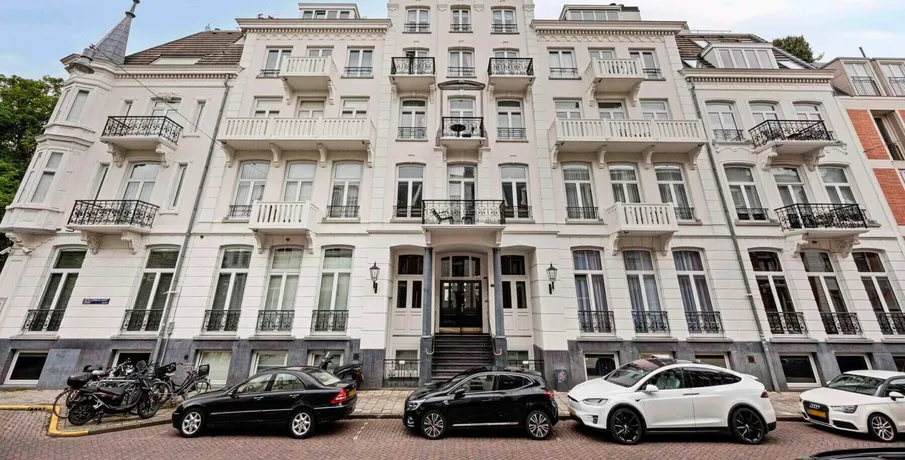 DescriptionStylish and representative, high-quality furnished apartment of approximately 142 m2 equipped with an elevator and parking space in the indoor parking garage, located in the complex ‘t Hoofdkwartier’ at the Vondelpark. The ultimate luxury of privacy, safety, space, and view is experienced in this apartment with international allure. The residence features a lovely living area with an atmospheric gas fireplace, a spacious TV sitting area, and a luxurious kitchen with views of the green Vondelpark and equipped with all conveniences. Additionally, the residence has two generous bedrooms and two spacious bathrooms with walk-in shower and separate toilet.. LAYOUT. First floor:. Hall with separate spacious wardrobe room with closet and laundry room. Impressive living room and open kitchen. Due to the corner location, many windows and the height, the space immediately appeals to the imagination. Every detail has been carefully selected. The luxury kitchen is equipped with various built-in appliances. Adjacent to the kitchen you will find the spacious dining area with a large dining table where you can enjoy meals with friends and family with a view of the beautiful Vondelpark. The living room has two sitting areas, one where you can relax by the fireplace, and the other where you can watch television. The lighting, blinds and curtains are remote controlled and music can be listened to everywhere by means of the integrated B&O music system.. The master bedroom is also located on this floor with an adjoining generously sized bathroom with double sinks, walk-in shower and separate toilet.. Mezzanine:. A spiral staircase leads to the mezzanine, which can be used as a second bedroom or as a study, for example. The mezzanine has plenty of closet space and provides access to the second bathroom, which is also equipped with double sinks, a walk-in shower and a separate toilet.. LOCATION. The apartment is indeed located in the quiet part of the well-known P.C. Hooftstraat, however you are in the most chic shopping street in Amsterdam with flagship stores of world-famous designers and fashion houses, a stone’s throw from some of the most iconic places in Amsterdam. Right next to the P.C. Hooftstraat you will find the Museumplein, home to some of the most renowned museums in the world, such as the Rijksmuseum. In addition, you are in an international environment with a rich range of shops, numerous caterers, restaurants and cafés where you can enjoy culinary delights or a delicious cup of coffee. Last but not least, you can relax in the nearby Vondelpark, the largest and most famous park in Amsterdam. This green oasis is the perfect place to relax. You you can also run, play tennis or go for a walk.. In short, this location has a lot to offer!. DETAILS. – Elevator available;. – The house is delivered furnished;. – Energy label B;. – The rental price excludes gas, water, electricity and internet;. – Including parking space in indoor parking garage;. – Deposit: 2 months;. – Available: immediately;. DISCLAIMER. All information, including but not limited to dimensions, is expressly indicative; no rights can be derived from it. Settlement due to over- or under-dimensioning is excluded. The written requirement is declared applicable, even if one or more parties qualify as professional buyers. Offer without obligation, delivery in consultation..