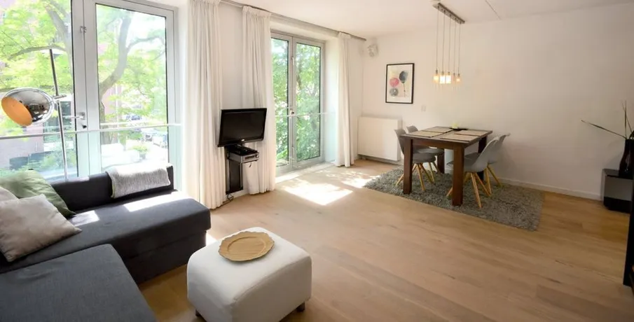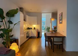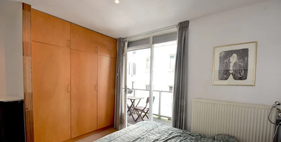 . Beschrijving. IntroductionSingle person occupancy only.The ApartmentThis modern and peaceful 50 m² apartment is located in a contemporary building, offering excellent noise and thermal insulation. It features beautiful wooden flooring throughout, creating a warm and comfortable living environment.Living RoomThe bright living room overlooks historic warehouse buildings on a quiet street. Furnished with a sofa....