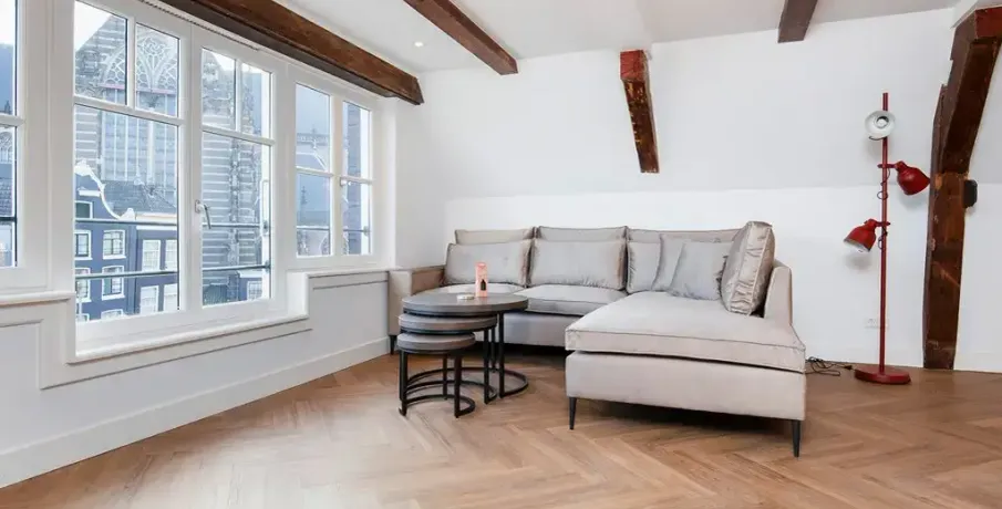Omschrijving Luxe Wonen in Hartje Amsterdam – Op een absolute A-locatie in het bruisende centrum van Amsterdam bieden wij deze hoogwaardige, recent gerenoveerde (2025) woonruimte te huur aan. Gelegen aan de prestigieuze , op steenworp afstand van de Dam en het Centraal Station, ervaart u hier het ultieme stadsleven met alle voorzieningen binnen handbereik. Indeling: Stijlvolle Indeling & Hoogwaardige Afwerking Bij binnenkomst via het nette gemeenschappelijke trappenhuis bereikt u de vierde verdieping, waar deze exclusieve woning zich bevindt. De royale woonkamer aan de voorzijde wordt gekenmerkt door grote ramen, die zorgen voor een prachtige lichtinval en een ruimtelijk gevoel. Aan de achterzijde bevindt zich het royale dakterras, De moderne open keuken is een droom voor kookliefhebbers en uitgerust met hoogwaardige inbouwapparatuur, waaronder: koelkast en vriezer met drie laden, combi-oven magnetron, Quooker voor direct kokend water, 4-pits inductiekookplaat met geïntegreerde afzuiging en vaatwasser. Op de tweede verdieping bevindt zich de ruime slaapkamer, die garant staat voor een goede nachtrust. Direct grenzend aan de slaapkamer ligt de luxe badkamer, voorzien van: wastafel met mengkraan, handdoekenradiator en stijlvolle inloopdouche met regendouche en handdouche. Omgeving: Wonen op een Iconische Locatie Dit exclusieve appartement ligt midden in het historische hart van Amsterdam, omringd door luxe winkels, trendy restaurants en gezellige cafés. Met de Dam en het Centraal Station op loopafstand bent u perfect verbonden met de rest van de stad en ver daarbuiten. Bent u op zoek naar een luxe, instapklare woonruimte op een toplocatie? Neem vandaag nog contact met ons op voor een bezichtiging! Bijzonderheden: – hele appartement recent hoogwaardig gerenoveerd en gemeubileerd; – 2 maanden borg; – gemeubileerde verhuur; – luxe materialen gebruikt, hele woning voorzien van mooie PVC vloeren in visgraat motief; – beschikbaar op korte termijn, in overleg; ENGLISH TRANSLATION: Luxury Living in the Heart of Amsterdam – In an absolute prime location in the vibrant center of Amsterdam, we proudly offer this high-end, recently renovated (2025) residence for rent. Situated on the prestigious , just steps away from Dam Square and Central Station, you’ll experience the ultimate city lifestyle with every convenience right at your doorstep Layout: Stylish Design & High-Quality Finishes Upon entering through the well-maintained communal staircase, you reach the fourth floor where this exclusive apartment is located. The spacious living room at the front features large windows, allowing for abundant natural light and a bright, airy atmosphere. At the rear, you’ll find the generous roof terrace. The modern open kitchen is a dream for cooking enthusiasts, fully equipped with high-quality built-in appliances, including a refrigerator and freezer with three drawers, a combination oven/microwave, a Quooker for instant boiling water, a 4-burner induction hob with integrated extractor, and a dishwasher. On the second floor, you’ll find the spacious bedroom that ensures a restful night’s sleep. Directly adjacent to the bedroom is the luxurious bathroom, fitted with a washbasin with mixer tap, towel radiator, and a stylish walk-in shower with both rain and hand shower. Surroundings: Living in an Iconic Location This exclusive apartment is situated in the historic heart of Amsterdam, surrounded by luxury boutiques, trendy restaurants, and cozy cafés. With Dam Square and Central Station within walking distance, you are perfectly connected to the rest of the city and beyond. Are you looking for a luxurious, move-in-ready home in a top location? Contact us today to schedule a viewing! Details: -Entire apartment recently renovated and furnished to a high standard -Two months’ deposit required -Fully furnished rental -Luxurious materials throughout, beautiful herringbone PVC flooring -Available on short notice, in consultation Lees volledige beschrijving