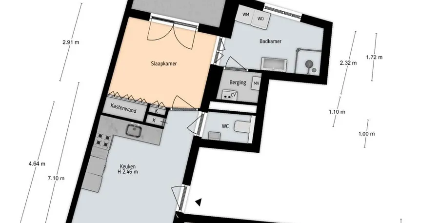 2 kamers appartement van 71 m2