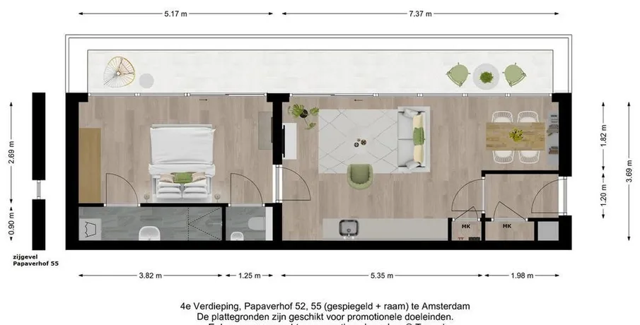 . Beschrijving. In Amsterdam-Noord ligt het moderne 2-kamer appartement aan Papaverhof 52. Dit appartement heeft een woonoppervlakte van 46 m² en bevindt zich op de vierde verdieping. Het beschikt over een slaapkamer en een dakterras van circa 15 m². De keuken is compleet en modern en is voorzien van alle inbouwapparatuur. De comfortabele badkamer heeft een inloopdouche. Verwarming gebeurt via een duurzame WKO....