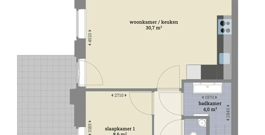 2 kamers appartement van 65 m2