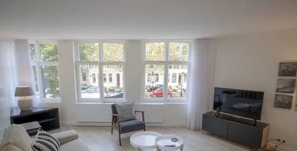 . Beschrijving. In het hart van Amsterdam ligt dit recent gerenoveerde appartement aan de Lijnbaansgracht, met een oppervlakte van 49m². Het biedt een slaapkamer, moderne voorzieningen en een prachtig uitzicht op de gracht. Gelegen op de eerste verdieping heeft het een lichte inrichting met houten vloeren, een goed uitgeruste keuken en een badkamer, ideaal voor één persoon. De woning is volledig gemeubileerd e....