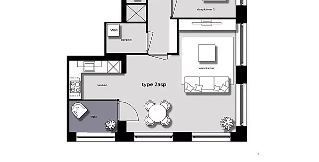 2 kamers appartement van 69 m2