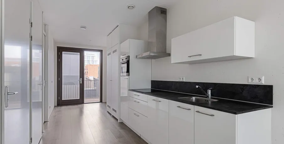 Heb je interesse in de woning en wil je een bezichtiging?. Je kunt dan een schriftelijke reactie achterlaten bij de advertentie, wij zullen dan de eerste kandidaten uitnodigen voor een bezichtiging. Vanwege de vele aanvragen kunnen wij helaas niet iedereen uitnodigen, als je binnen 3 dagen geen reactie hebt ontvangen, ben je helaas niet geselecteerd om het appartement te bezichtigen. Telefonisch plannen wij geen afspraken in.. Are you interested in the house and do you want a viewing?. Please leave a written response to the advertisement, we will then invite the first candidates for a viewing.. Unfortunately, due to the many requests, we can’t invite everyone. If you have not received a response within 3 days, you have unfortunately not been selected to view the apartment. We don’t schedule appointments by telephone.. Op een mooie locatie in Amsterdam Buiksloterham, bieden wij per direct dit mooie appartement aan.. Het appartement beschikt over 1 slaapkamer, een gezellige woonkamer en een speels ingerichte badkamer. Het appartement is gelegen op de 4e etage in Dok 7 aan de ,. Het appartement is onderdeel van Dok 7. Het complex beschikt over 30 huurwoningen met verschillende woontypes.. De woontoren is van alle gemakken voorzien. Zo beschikt u over een lift, een eigen berging op de begane grond en heeft u de mogelijkheid tot het huren van een parkeerplaats in de nabijgelegen parkeergarage van het gebouw.. Vanuit de entree zijn alle vertrekken van de woning te bereiken. Aan de rechterkant bevind zich de slaapkamer van circa 9 m2. Tevens is de luxe afgewerkte badkamer en de inpandige berging met wasmachine aansluiting vanuit de hal te bereiken. Aan de achterzijde van het appartement bevindt zich de woonkamer van circa 15 m2 met aan de linkerzijde de open keuken voorzien van alle benodigde inbouwapparatuur. Zoals een combi oven/magnetron, kookplaat, afzuigkap, koel/vries combinatie en een vaatwasser. Het balkon is vanuit de woonkamer te bereiken en heeft een oppervlakte van circa 7 m2.. Het appartementencomplex staat aan het water van het Tolhuiskanaal. Een gebied met een industrieel verleden. Op loopafstand bevinden zich verschillende supermarkten, bouwmarkten en eetgelegenheden. Daarnaast loopt u in enkele minuten naar het populaire A’DAM Lookout en PLLEK. Met gemak brengt de (gratis) pont u over het IJ naar Amsterdam Centraal station. Tevens zijn de bushaltes en metrostation met de Noord-Zuid lijn op loopafstand te bereiken.. – Per 22 direct beschikbaar. – Gelegen op de 4e etage. – Luxe afgewerkte badkamer. – Moderne keuken met inbouwapparatuur. – De woning wordt NIET gemeubileerd opgeleverd. De inkomenseis van dit appartement is 3,5 keer de maandhuur. Tevens wordt er een waarborgsom gehanteerd van 2 maanden huur. Het is voor maximaal 2 personen mogelijk om deze woning te huren. Het niet mogelijk voor studenten om dit appartement te huren. Garantstelling is ook niet toegestaan.. Immediately available. At a beautiful location in Amsterdam Buiksloterham, we offer this beautiful apartment.. The apartment has 1 bedroom, a cozy living room and a playfully decorated bathroom. The apartment is located on the 4th floor in Dok 7 at .. The apartment is part of Dok 7. The complex has 30 rental homes with different residential types.. The residential tower is fully equipped. There is an elevator, an own storage room on the ground floor and there is an option of renting a parking space in the nearby parking garage of the building.. All rooms of the house can be reached from the entrance. On the right side is teh bedroom, approximately 9 m2. The luxuriously finished bathroom and storage room with washing machine connection can also be reached from the hall. At the rear of the apartment is the living room of approximately 15 m2 with on the left side an open kitchen with all necessary appliances. Such as a combi oven / microwave, hob, extractor, fridge / freezer and a dishwasher. The balcony is accessible from the living room and has an area of approximately 7 m2.. The apartment complex is located on the water of the Tolhuiskanaal. An area with an industrial past. There are several supermarkets, hardware stores and eateries within walking distance. You can also walk to the popular A’DAM Lookout and PLLEK in a few minutes. The (free) ferry will take you across the IJ to Amsterdam Central station with ease. The bus stops and metro station with the North-South line are also within walking distance.. – Immideately available. – Located on the 4th floor. – Approximately 50 m2. – Luxuriously finished bathroom. – Modern kitchen with built-in appliances. – The apartments comes WITHOUT furniture. The income requirement of this apartment is 3.5 times the monthly rent. There is also a deposit of 2 months rent. It is possible to rent this house for a maximum of 2 people. It is not possible for students to rent this apartment. Guarantor is also not allowed.