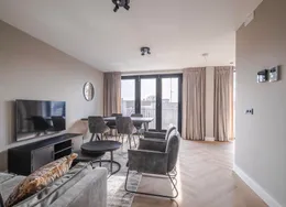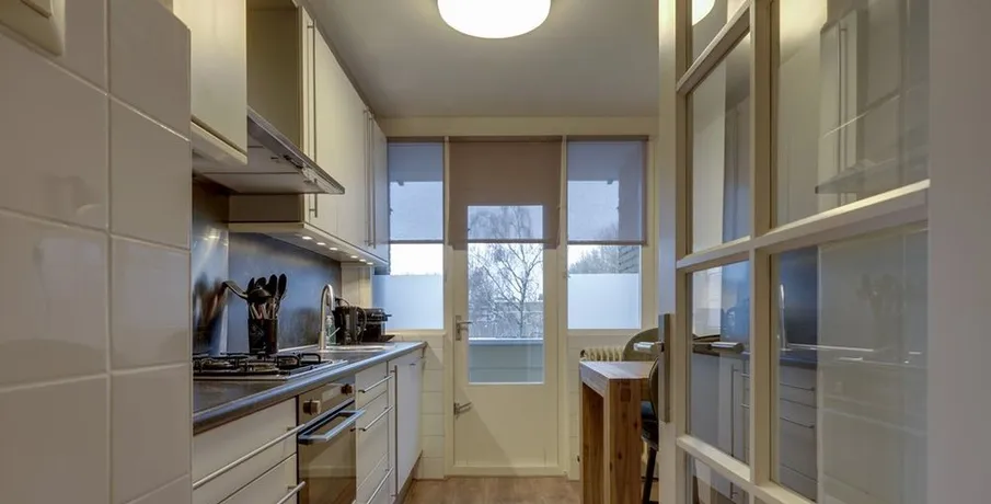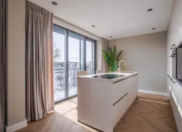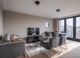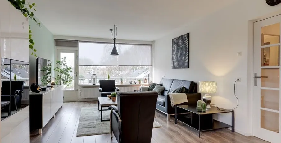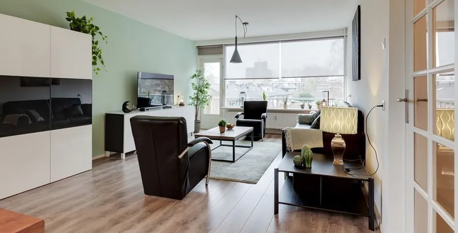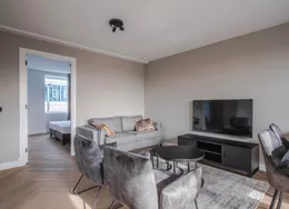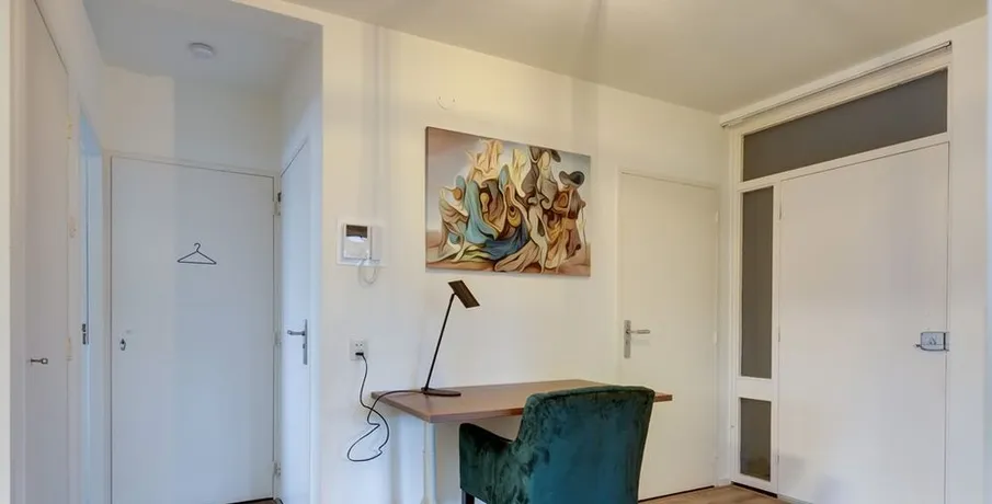 . Beschrijving. Bent u op zoek naar een tijdelijke woonruimte in Arnhem? Dan is een short stay appartement een perfecte oplossing voor u! Dit nieuwe short stay hoek-appartement op de 2e etage is instapklaar en volledig nieuw luxe gemeubileerd en voorzien van alle inventaris! Kortom, een appartement voorzien van alle comfort en gemak. Het appartement wordt volledig instapklaar opgeleverd, voorzien van nieuwe en luxe meubilair en inventaris. U zal dus de eerste inwoner zijn die gebruik mag maken van de nieuwe inventaris!. Of u nu voor werk, studie of een andere reden naar Arnhem komt, het is prettig om een goede thuisbasis te hebben. Door tijdelijk een woonruimte te huren bent u verzekerd van een eigen vaste locatie gedurende uw verblijf. Het is vaak goedkoper dan het huren van een hotel voor een aantal weken/maanden en het geeft u een prettig en huiselijk gevoel.. De locatie:. Het appartementen complex is gelegen in de rustige groene wijk ‘Over het lange water’ aan de rand van de stad Arnhem in de nabijheid van (hoge)scholen en sportvelden. Tevens is het gezellige winkelcentrum Presikhaaf en het stadcentrum van Arnhem op een paar fietsminuten bereikbaar. Voor de natuurliefhebbers onder u, binnen enkele minuten staat u aan de voet van Nationaal park Veluwezoom ('Posbank') en tevens fietst u vanuit de wijk heerlijk langs de IJssel. Daarnaast is de dichtstbijzijnde uitvalsweg naar de A12 en de A325 op slechts 1 minuut rijden.. Begane grond:. Gezamenlijke entree met bellentableau, brievenbussen, toegang tot berging, lift en trapopgang naar de 2e verdieping.. Vanuit uw eigen voordeur treedt u de hal binnen welke toegang geeft tot het deels betegelde toiletruimte met zwevend closet en fonteintje, badkamer, woonkamer, keuken, slaapkamer en wasruimte.. Woonkamer:. Riante woonkamer met toegang tot beide balkons, waarvan het kleine balkon is gesitueerd op het westen en het grote balkon op het zuiden. Volledig ingericht en voorzien van TV, internet en strakke wand- en plafondafwerking. Tevens geniet de woonkamer van veel lichtinval middels het grote raampartij en het zijraam gezien het een hoek-appartement betreft. Daarnaast geniet u van een groen en vrij uitzicht.. Keuken:. De moderne en gesloten keuken is van alle gemakken voorzien. Namelijk een 4-pits gaskookplaat, oven, afzuigkap, koelkast en alle inventaris die u nodig hebt in de keuken. Tevens vanuit hier toegang naar het ruime balkon die gesitueerd is op het zuiden.. Slaapkamer:. De ruime slaapkamer met luxe tweepersoons boxspring, ruime kledingkast en een strakke wand- en plafondafwerking en een ruimte voor een werkplek. De slaapkamer met groot raampartij zorgt voor veel lichtinval in deze ruimte.. Badkamer:. De geheel betegelde moderne badkamer is uitgerust met een inloopdouche met thermostaatkraan, vaste wastafel met wastafelmeubel, ligbad en een designradiator.. Wasruimte:. Er is een separate bergruimte aanwezig met wasmachine en droger.. Het hoek-appartement is voorzien van 2 balkons welke te bereiken zijn vanuit de woonkamer en keuken. Gelegen op het westen en het zuiden met een fraai en groen uitzicht.. - Huurprijs € 2.150,00 p/m inclusief servicekosten, G/W/L en internet;. - Borg 1,5 maand huur;. - Maximale huurperiode 6 maanden;. - Luxe nieuw gemeubileerd en voorzien van alle inventaris;. - Woonoppervlakte ca. 73 m²;. - 2 balkons op het westen en zuiden;. - Gratis openbaar parkeren;. - Spouwmuurisolatie en dubbel glas in alle ramen;. - Fraai zicht op groen en speeltuin;.