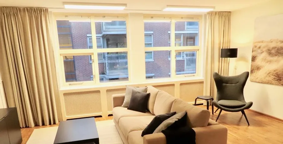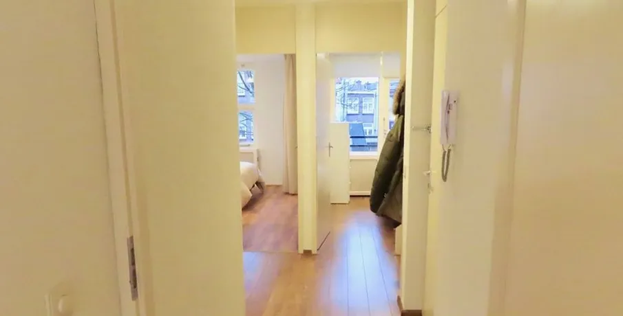 . Beschrijving. Recently renovated and fully furnished turn-key apartment with balcony and two bedrooms at the Pieterstraat. This apartment in the historical city centre has a living space of ca. 80m2 and has elevator access. Brand new furniture and a storage in basement. Optional private parking spot can be included as well. Pieterstraat is a side street of the famous Prinsestraat and within walking distance to the palace gardens of Noordeinde. Tram 16 stops at the at end of the street and will bring you to the International Zone of The Hague, beach or Central Station.. Layout. Entrance from the street. Elevator to the 2nd floor. Entrance to the apartment with small hallway. Spacious living room with luminous windows. Open kitchen with dish washer, stove, oven, microwave and freezer / fridge. Storage room with washing machine and shelves.. Master bedroom with comfortable boxspring double bed and wardrobe and doors to the balcony. 2nd bedroom with bed and wardrobe and access to the balcony.. Renovated bathroom with sink and walk-in shower. Separate toilet.. Wooden and laminate flooring, centrally heated and double glazed. Storage room in the basement. And optional parking spot.. Location. Located on the edge of the city centre, around the corner of the Palace Gardens, a lovely location for a stroll on a sunny day. Shops, restaurants and cafes are within walking distance as well as public transport (at the end of the street).. Key aspects. - Fully furnished and serviced. - Trendy kitchen. - Renovated bathroom. - Two spacious bedrooms. - Balcony. - Elevator access. - External storage. - Optional parking place available. Rental price: €2100,- excluding utilities - Furnished.