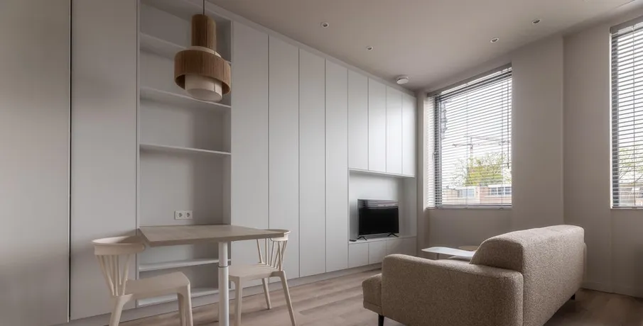 . Omschrijving. High-end appartement – minimale huurtermijn 12 maanden. Ervaar het ultieme comfort in dit high-end appartement, gelegen in het hart van Eindhoven.. Huurprijs:. €1500,- exclusief gas, water en elektra en servicekosten per maand. Staat:. Gemeubileerd. Beschikbaar:. begin januari. Minimale huurtermijn:. 12 maanden. De servicekosten zijn niet inbegrepen in de huurprijs.. Bijzonderheden:. Centrale locatie in het stadscentrum. Luxe inrichting. Dakterras van ruim 50 m². De Woning:. De volledig uitgeruste keuken biedt alles voor culinair gemak, terwijl de moderne badkamer een oase van rust vormt. Grote ramen zorgen voor veel natuurlijk licht, waardoor de efficiënt ingerichte ruimte nog lichter en ruimer aanvoelt. Elk detail van het appartement is met zorg afgewerkt, wat zorgt voor een luxe uitstraling op topniveau.. Locatie:. Gelegen midden in het bruisende stadscentrum van Eindhoven, met vele restaurants, winkels, cafés en een bioscoop om de hoek. Het Centraal Station is op loopafstand, wat deze locatie ideaal maakt voor zowel werkenden als studenten.. Voorwaarden:. Minimale huurtermijn: 12 maanden. Waarborgsom afhankelijk van profiel. Geen huisdieren toegestaan. Roken niet toegestaan. Huurovereenkomst voor reguliere lange termijn verhuur. Hoewel deze tekst met zorg is opgesteld, kunnen hier geen rechten aan worden ontleend. Maten zijn indicatief en niet NEN-gemeten. Gunning onder voorbehoud van goedkeuring door verhuurder/eigenaar.. Lees meer.