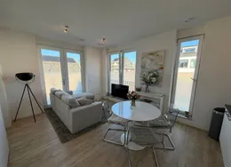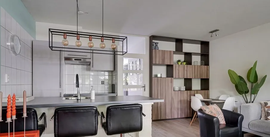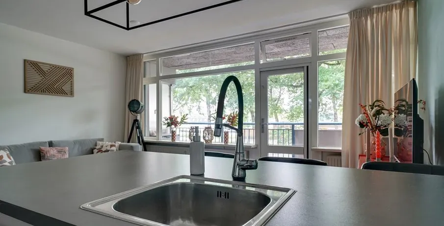 . Beschrijving. SHORT STAY. Bent u op zoek naar een tijdelijke woonruimte in Eindhoven? Dan is een short stay in Eindhoven een perfecte oplossing voor u! Of u nu voor werk of een andere reden naar Eindhoven komt, het is prettig om een goede thuisbasis te hebben. Door tijdelijk een woonruimte te huren bent u. verzekerd van een eigen vaste locatie gedurende uw verblijf. Het is vaak goedkoper dan het huren van een hotel voor een aantal. weken/maanden en het geeft u een prettig en huiselijk gevoel.. De short stay 2-kamer appartementen zijn instapklaar en volledig luxe gemeubileerd. Een appartement is voorzien van alle comfort en gemak.. Locatie: Dit appartement is ideaal gelegen aan het Kastelenplein in Eindhoven-Zuid, op loopafstand van winkelcentrum Kastelenplein. Hier vindt u een gevarieerd aanbod aan winkels, waaronder Albert Heijn, Etos, Kruidvat, HEMA en diverse horecagelegenheden. Op slechts enkele autominuten van de High Tech Campus Eindhoven. Dichtbij ASML. Goede aansluiting op de A2/N2 en andere uitvalswegen, waardoor het centrum van Eindhoven en omliggende steden snel bereikbaar zijn.. Begane grond:. Gezamenlijke entree met intercom, brievenbussen, trapopgang en lift naar de 1e verdieping.. Via de galerij loopt u naar de entree van het appartementen.. Vanuit uw voordeur treedt u de hal binnen welke toegang geeft tot de woonkamer, de slaapkamer, badkamer en aparte ruimte voorzien van de wasmachine. Vanuit de hal hebt u ook toegang tot de deels betegelde toiletruimte met zwevend closet. Het appartement is voorzien van laminaat vloer en een de hal van tegels.. De woonkamer en eethoek is volledig ingericht en voorzien van smart tv, internet en strakke wand- en plafondafwerking. Tevens geniet de woonkamer van veel lichtinval middels de grote raampartijen en vrij uitzicht. Vanuit de woonkamer hebt u toegang tot het zonnig balkon. De moderne open keuken waar u kunt genieten aan de bar met spoeleiland en is van alle gemakken voorzien. Namelijk een 4-pits inductie, kookplaat, afzuigkap, oven, koelkast met vriesvak, vaatwasser en alle inventaris die u nodig hebt in de keuken.. De ruime slaapkamer met tweepersoons boxspring, ruime kledingkast en een strakke wand- en plafondafwerking.. De geheel betegelde moderne badkamer is uitgerust met een inloopdouche en handdouche met thermostaatkraan, vaste wastafel met lades.. De aparte wasruimte is voorzien van een wasmachine, wasrek, stofzuiger etc. en hebt u diverse opbergmogelijkheden.. Gezellig balkon van 7 m2 voorzien van tuinset en een vrije uitkijk.. Algemeen:. - Short Stay I Maximale huurperiode 6 maanden;. - Luxe gemeubileerd en voorzien van alle inventaris;. - Woonoppervlakte ca. 57 m²;. - Balkon van 7 m2;. - Gratis openbaar parkeren;. - Totale huurprijs €2.000 All-in.