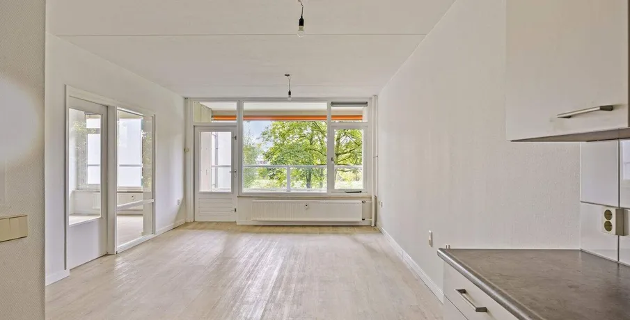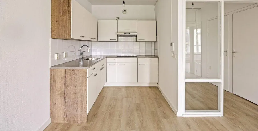 LET WEL: IN ZIJN HUURDERS WELKOM MET EEN LEEFTIJD VAN 55 JAAR OF OUDER!. Aan de rand van het centrum van Heerlen, met aan de ene zijde het bruisende stadscentrum en aan de andere zijde een heerlijk groengebied, staat het recent gerenoveerde appartementencomplex .. Het op de foto’s getoonde appartement is een modelwoning. Er komen geregeld appartementen beschikbaar bij dit complex. Indien u interesse heeft en voldoet aan de voorwaarden, kunt u contact met ons opnemen. . De appartementen zijn of worden allemaal voorzien van een nieuw keukenblok, voorzien van de gewenste apparatuur, strakke wanden, pvc-vloerafwerking en een badkamer met douche en wastafel.. Indeling:. Begane grond. Entree met bellentableau.. Representatieve ontvangst hal met brievenbussen en toegang naar de liften.. Appartement. Hal met toegang tot het appartement.. Entree en ontvangsthal.. Woonkamer (8.28 x 3.77 m) met toegang naar de open keuken en voorzien van keurige pvc-vloer. Tevens toegang naar het balkon (3.87 x 1.76 m).. Open keuken met inductiekookplaat.. Slaapkamer 1 (4.82 x 2.98 m). Geheel betegelde modern afgewerkte badkamer (3.60 x 2.98 m) met ruime inloopdouche en brede vaste wastafel en hangtoilet. De badkamer is zowel vanuit de entree als vanuit de slaapkamer bereikbaar. . Berging (2.98 x 1.86 m) met opstelling CV- installatie.. Bijzonderheden. Gunstig gelegen t.o.v. doorgaande wegen en centrum. . Een fijne woonomgeving in een keurig verzorgd complex.. Servicekosten zijn € 125,- per maand. Alle maten zijn circa maten