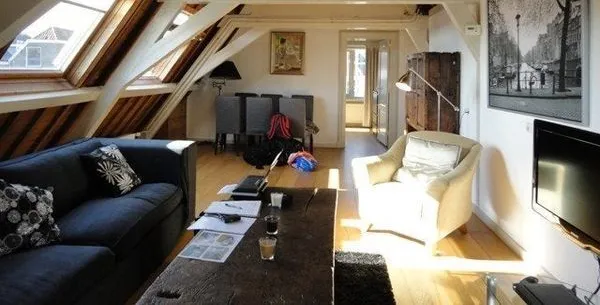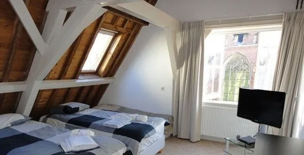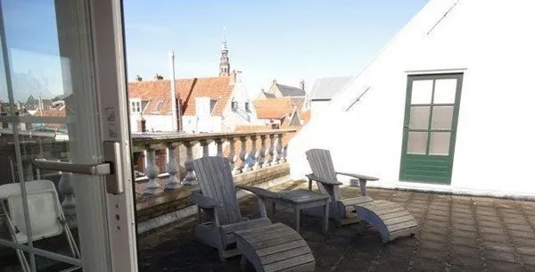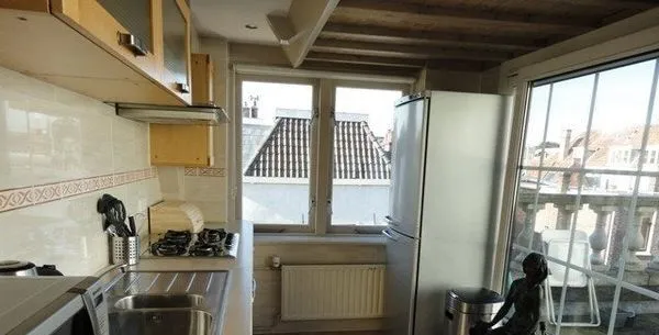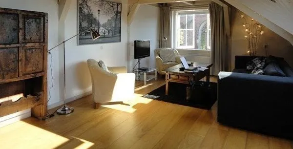 . Beschrijving. Monumental, very spacious and luxury 3 room penthouse apartment. (± 100m²).Newly renovated beautiful fully-furnished top floor apartment with extraordinary views on the ‘Hooglandse’ church from living room, bedroom, kitchen and private roof terrace.Very light and spacious living room, high ridge of the roof with old wooden beams, oak wood floor covering in living room and 1 bedroom, rest terrac....