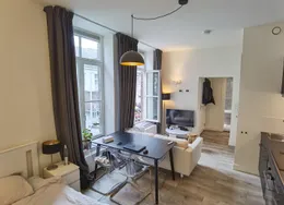 . Beschrijving. Trendy sudio gerealiseerd in een voormalig schoolgebouw op een zeer rustige locatie. Volledig gemeubileerd en van alle gemakken voorzien met een gunstige ligging aan de Groene Loper.. Indeling:. Eerste verdieping:. In een monumentaal voormalig schoolgebouw is deze trendy studio gelegen. Het betreft een volledig gemeubileerde studio dat van alle gemakken is voorzien. Het meubilair en de styling zijn zorgvuldig uitgezocht en geven de woning een hippe industriële look.. De woning beschikt over een woonkamer met zit- en eetgedeelte en staat in directe verbinding met de keuken. De openkeuken is voorzien van een moderne afwerking en diverse inbouwapparatuur, waaronder een koelkast met vriesvak, 2-pits inductie kookplaat, afzuigkap en combi magnetron. Ook de badkamer is strak afgewerkt en beschikt over een douche, wastafel en toilet. De slaapkamer is voorzien van een kwalitatieve 2 persoons boxspring.. Extra informatie:. - Huurprijs exclusief voorschot water en elektra ( €100,- bij 1 persoon), meubilering ( €45,-) en servicekosten en internet ( €60,-). - Energiezuinige woning (label A++) zonder gasverbruik; verwarmen en koelen middels airconditioning. - Enkel voor 1 persoon. - Gezamenlijke wasmachine en droger aanwezig (tegen betaling). - Afsluitbare fietsenstalling aanwezig. Algemene informatie:. In het dit voormalige schoolgebouw zijn deze trendy stadswoningen gerealiseerd. De woningen beschikken over een industriële uitstraling en zijn hoogwaardig afgewerkt. Het complex is zeer gunstig gelegen ten opzichte van diverse faciliteiten. Zo is er diverse horeca, openbaar vervoer en winkelgelegenheid op loopafstand te bereiken. Daarnaast liggen de uitvalswegen ook binnen handbereik..
