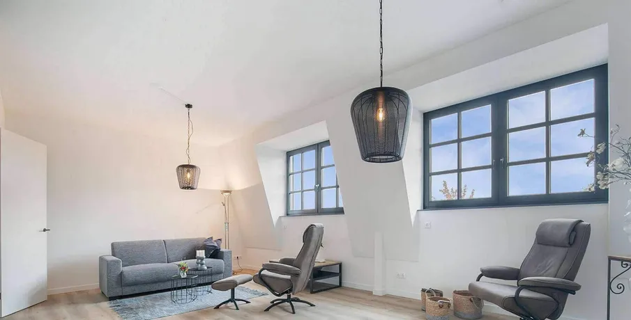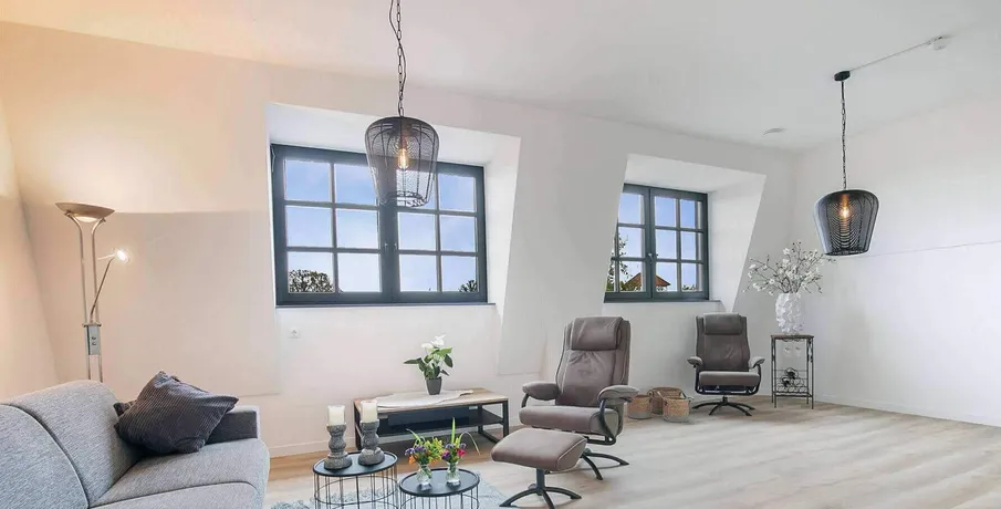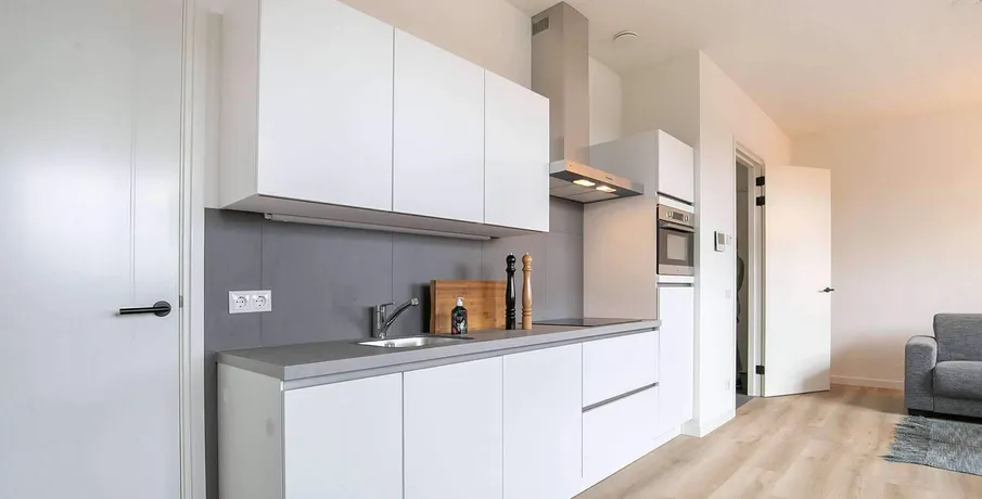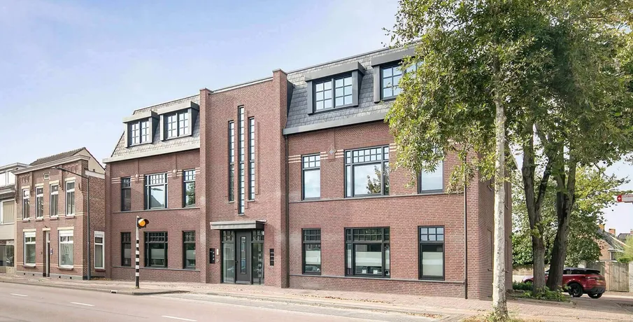 DescriptionVery energy-efficient, furnished, luxurious penthouse for rent in a small-scale newly realized residential complex with 6 rental apartments opposite “de Action” on the site where the Hessels drugstore was located in Rijsbergen until the end of 2016. The penthouse is located on the 2nd floor, which you can also reach by elevator. The apartment has 2 beautiful bedrooms, balcony, private parking, private storage room and a communal bicycle shed.. Rijsbergen is a village in the municipality of Zundert in the Dutch province of North Brabant. Until January 1, 1997 it was an independent municipality. Most of this municipality, including the hamlet of Hazeldonk, has been merged with the old municipality of Zundert to form the new municipality of Zundert.. Rijsbergen is located between Zundert and Breda and is accessible via the A16 and N263. The distance to Breda is 8.4 km, which means that you can reach Breda within 10 minutes by car. Nearby centers are Effen, Etten-Leur, Galder, Klein-Zundert, Meer, Meersel-Dreef and Sprundel.. Public transport from Arriva via:. Line 115: Breda – Rijsbergen – Zundert. Line 225: Zundert – Rijsbergen – Etten-Leur (local bus). Line 615: Zundert – Rijsbergen – Breda (Mencia de Mendoza). Share taxi Southwest Brabant. Layout. Ground floor:. Communal covered entrance. Doorbells and mailboxes on the outside. Central hall with fixed stairs and elevator. The stairwell also provides access to the basement with private storage. At the rear of the apartment complex there is a communal bicycle shed and a parking space per apartment.. 2nd floor:. Entrance, hall with access to the meter cupboard, toilet, bathroom, living room with open kitchen and separate laundry-cum-boiler room, and bedrooms. The master bedroom has French doors to the balcony.. The kitchen is equipped with a dishwasher, combination oven, microwave, fridge-freezer, 4 burner induction, extractor hood, sink and a plastic worktop.. The bathroom has a walk-in shower with rain shower, double sink with cabinet.. In the storage room next to the kitchen are the connections for the washing machine and (condensation) dryer. This is also where the heat pump is located.. Parking and shared storage. There is parking available behind the apartment complex. Parking spaces are reserved for the residents of the complex directly behind the complex.. The shared (bicycle) storage room consists of an open space. Each apartment has a private storage room in the basement of the complex.. Rental conditions. The rental price includes the contribution for the owners’ association and excludes utilities. When renting, a deposit of 2 months’ rent is required. Rental payments per month or period to be agreed in advance. Rental period is at least 12 months. Prospective renters are asked to provide information regarding identity and creditworthiness. Rental agreement is only concluded after assessment and approval by the client. Pets are not allowed. Smoking is not permitted in the apartment complex. Furnishing of the apartment is possible at an additional cost..