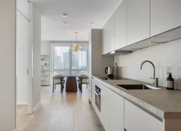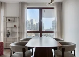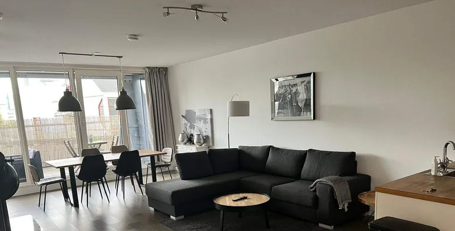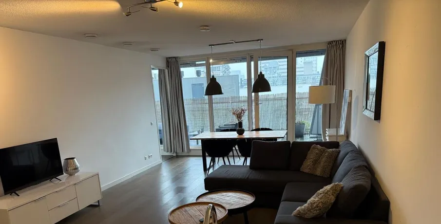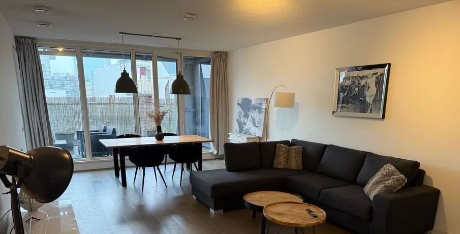 . Nice furnished fully serviced 1 bedroom apartment with private parking (extra 250 euro a month) in the new Calypso building!. Nice big terrace with great view, wifi, close to bars, shops, cinemas, supermarket below the building.. An indoor gym is also available and free.. For expats it is close to all multinationals!. Layout: entrance by lift; 6th floor; hallway; living room with entrance to the terrace; spacious bedroom with 160/200 bed, bathroom with walk in shower.. Wifi/HD TV are present. Fully equipped kitchen. Washer dryer combi machine also present.. Read more. Close.