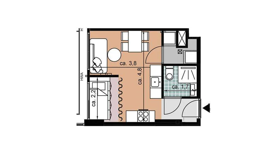 1 kamer van 28 m2