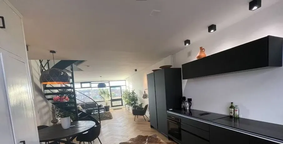 . Beschrijving. Algemeen: Prachtig & Compleet gerenoveerd, super modern appartement (100m2) met 3 balkons op de 3e en 4e verdieping met vrij uitzicht.-Alles is vernieuwd: keuken (zwart), badkamer (zwart/grijs), vloer (hout), en de muren gestuukt en alles geschilderd. Perfecte ligging: midden in de stad, maar ook binnen 2 minuten buiten, waardoor u veel tijd bespaart.Globale plattegrond:-Entree op de begane....