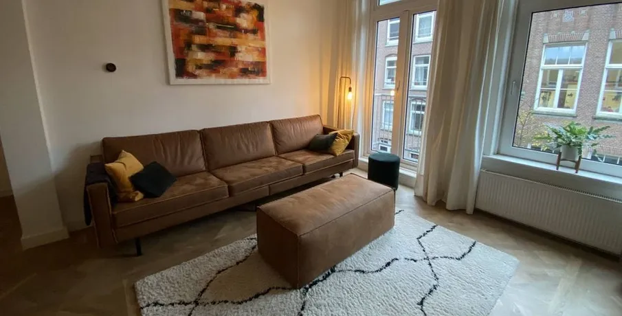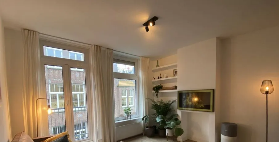 . Beschrijving. STYLISH & UNIQUE, 2 bedroom apartment, fully furnished and canal view, situated on an amazing spot!!No sharing, no students! Beautifully furnished and equipped apartment; Stunning view overlooking the water; Atmospheric and spacious living, including "The Frame TV" which looks like a painting while it's off; Lot's of built-in cupboard and storage space; Wooden floors throughout th....