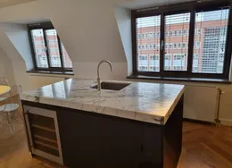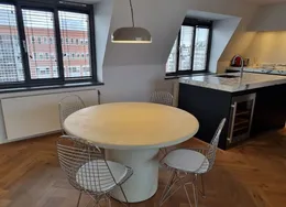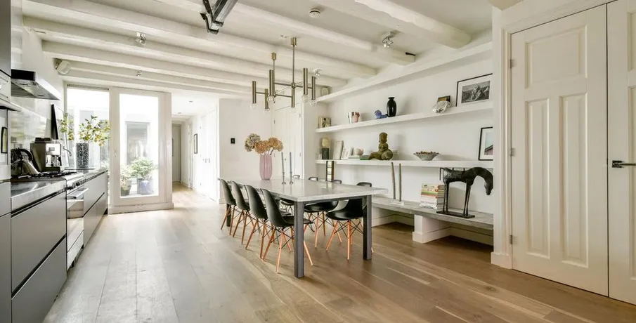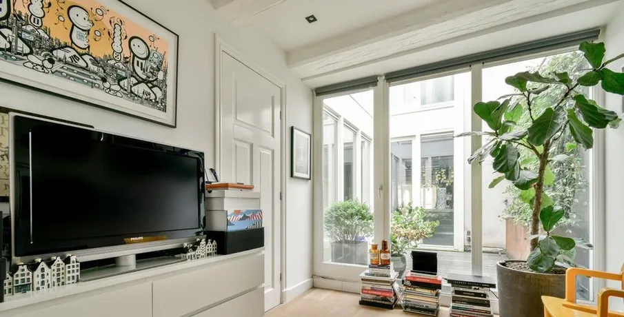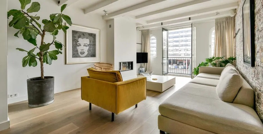 . Beschrijving. Amazing "Loft" apartment in very nice area. Located on the border of Jordaan in the centre of Amsterdam. Close to Oud West and the canals. Very stylish with brick wall and "state of art" furniture .Entrance into bright and spacious apartment. Front size has the view and living area. You can chill there easily next to the fire place.Kitchen and dining area in the middle. Luxu....