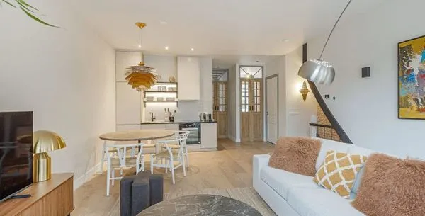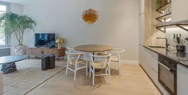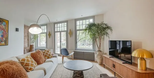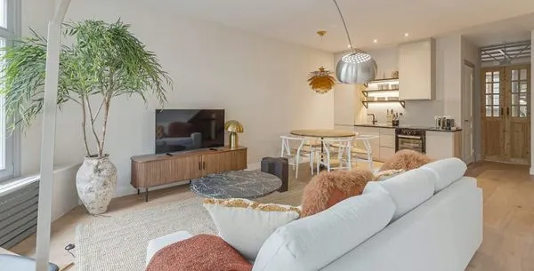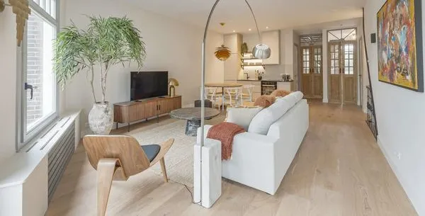 . Beschrijving. In Amsterdam Oud-West vind je dit net gerenoveerde, ruime tweekamerappartement van 65m2, gelegen aan de Derde Kostverlorenkade met uitzicht op een kanaal. De privé-ingang biedt toegang tot een open woonkamer, waar de eet- en keukenruimte samenkomen. De volledig uitgeruste keuken beschikt over een koelkast, vaatwasser, oven en magnetron. De gezellige zithoek is voorzien van een 50-inch flatscree....