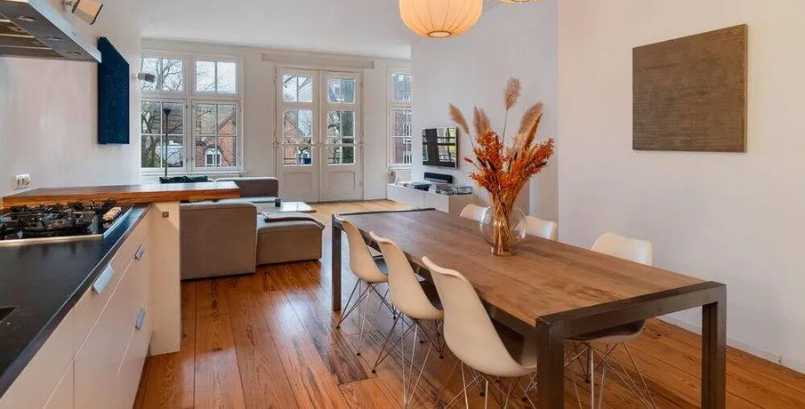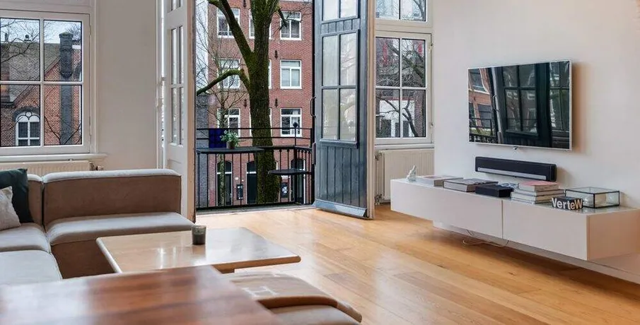 . Beschrijving. Spacious furnished 2 bedroom apartment for rent in the city center of Amsterdam. The location is fantastic: in the heart of the Joraan district, close to the Elandsgracht. The street is very quiet, but all the city has to offer is at walking distance! Perfect for a or couple or small family. Public transport, shops, restaurants and bars around the corner.. - Directly available for minimum 12 months (indefinite rental agreement, Model A). - 2 bedrooms (sharing possible with maximum 2 friends / colleagues, NO STUDENTS). - 98 m2. - Energylabel D. - Fully equipped kitchen with built in appliances. - Fully furnished. - Central location in the Joraan. - Bathroom with shower, bathtub and double sink. - Separate toilet. - Washing machine. - Close to public transport. - Registration possible. - Nice canal view. - Double glassed windows. - Pets up for discussion. Rental price € 3950,- excluding utilities. Deposit equal to 2 months rent.