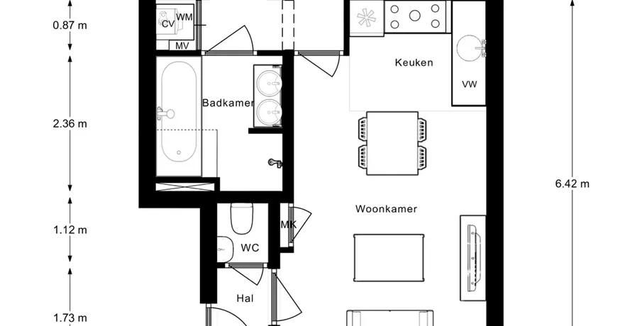 3 kamers appartement van 50 m2